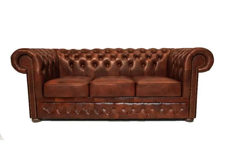 Chesterfield First Class leather 3-sjedišta sofa Cloudy Caramel Ruka majstora u ovom Chesterfield kauču od goveđe kože prvog razreda jasno je prepoznatljiva po lijepo završenim detaljima, poput zakovica i tapeciranih rukohvata i naslona. Jedan od najvažnijih materijala prilikom proizvodnje dobrog Chesterfielda je koža. Chesterfield namještaj izrađuje se ručno od visokokvalitetne poluanilinske kože, koja se zatim lakira. Okvir je izrađen od bukovine, koja se lijepli i vijča. Duga tradicija zanatstva vidljiva je kroz udobnost i izgled Chesterfielda. Chesterfield model ‘First Class’ je model koji svi prepoznajemo kao pravi Chesterfield. Ovaj model Chesterfielda dostupan je samo u goveđoj koži i dostupan je kao klasa i prva klasa. Potvrda o autentičnosti i jamstvo kvalitete standardni su uz svaki kupljeni komad namještaja. Tehnički podaci