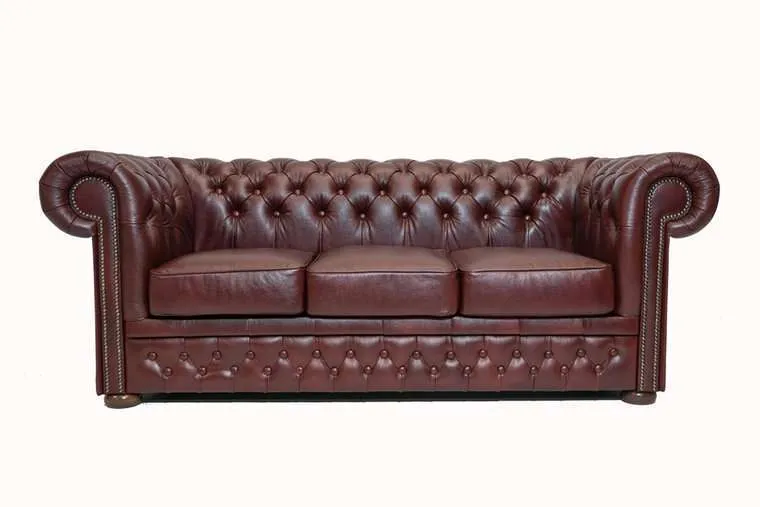 Chesterfield First Class leather 3-sjedišta sofa Cloudy Red Ruka majstora u ovom Chesterfield kauču od goveđe kože prvog razreda jasno je prepoznatljiva po lijepo završenim detaljima, poput zakovica i tapeciranih rukohvata i naslona. Jedan od najvažnijih materijala prilikom proizvodnje dobrog Chesterfielda je koža. Chesterfield namještaj izrađuje se ručno od visokokvalitetne poluanilinske kože, koja se zatim lakira. Okvir je izrađen od bukovine, koja se lijepli i vijča. Duga tradicija zanatstva vidljiva je kroz udobnost i izgled Chesterfielda. Chesterfield model ‘First Class’ je model koji svi prepoznajemo kao pravi Chesterfield. Ovaj model Chesterfielda dostupan je samo u goveđoj koži i dostupan je kao klasa i prva klasa. Potvrda o autentičnosti i jamstvo kvalitete standardni su uz svaki kupljeni komad namještaja. Tehnički podaci