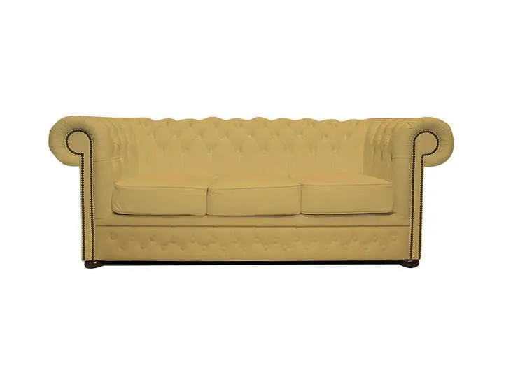 Chesterfield First Class leather 3-sjedišta sofa Ivory Ruka majstora u ovom Chesterfield kauču od goveđe kože prvog razreda jasno je prepoznatljiva po lijepo završenim detaljima, poput zakovica i tapeciranih rukohvata i naslona. Jedan od najvažnijih materijala prilikom proizvodnje dobrog Chesterfielda je koža. Chesterfield namještaj izrađuje se ručno od visokokvalitetne poluanilinske kože, koja se zatim lakira. Okvir je izrađen od bukovine, koja se lijepli i vijča. Duga tradicija zanatstva vidljiva je kroz udobnost i izgled Chesterfielda. Chesterfield model ‘First Class’ je model koji svi prepoznajemo kao pravi Chesterfield. Ovaj model Chesterfielda dostupan je samo u goveđoj koži i dostupan je kao klasa i prva klasa. Potvrda o autentičnosti i jamstvo kvalitete standardni su uz svaki kupljeni komad namještaja. Tehnički podaci