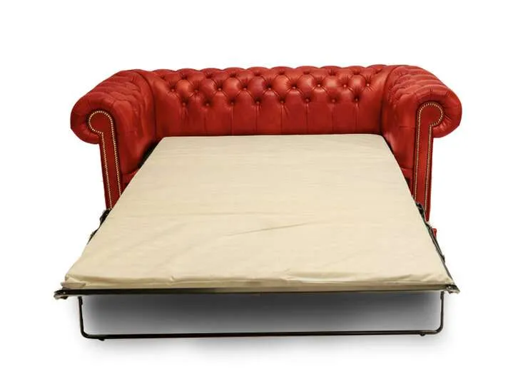 Chesterfield Sofa Bed First Class RedRuka majstora u ovim komadima namještaja od goveđe kože jasno je prepoznatljiva po lijepo izrađenim detaljima, poput zakovica i tapeciranih rukohvata i naslona.Jedan od najvažnijih materijala prilikom proizvodnje kvalitetnog Chesterfielda je koža. Chesterfield namještaj ručno je izrađen od visokokvalitetne poluanilinske kože, koja se zatim lakira.Okvir je izrađen od bukovine, koja je zalijepljena i vijčana. Duga tradicija zanatskog umijeća vidljiva je kroz udobnost i izgled Prve klase.Chesterfield model ‘Prva klasa’ je model koji svi poznajemo kao pravi Chesterfield. Ovaj Chesterfield model dostupan je samo u goveđoj koži i dostupan je kao Klasa i Prva klasa.Sklapajući ležaj sakriven je u kauču i ima sljedeće dimenzije: širina 145 cm i duljina 195 cm.Uz svaki komad namještaja standardno se pruža certifikat autentičnosti i jamstvo kvalitete.Tehnički podaci