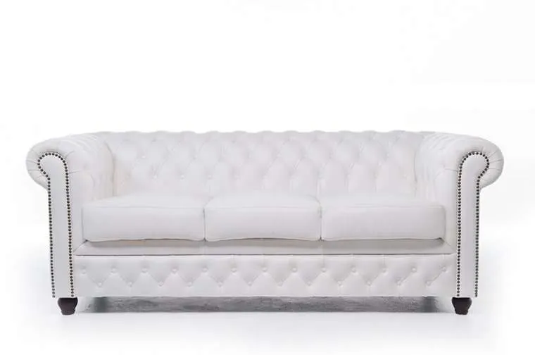 Chesterfield 3-sjedišta Original leather WhiteOva sofa, iz House of Chesterfieldovog vrhunskog modela Original, dostupna je u različitim bojama. Ruka zanatlije u ovim komadima namještaja od goveđe kože jasno je prepoznatljiva po prekrasno završenim detaljima, poput zakovica i udobnih naslona za ruke i leđa.Jedan od najvažnijih materijala pri proizvodnji dobrog Chesterfielda je koža. Namještaj Chesterfield ručno je izrađen od visokokvalitetne polu-anilinske kože, koja se zatim lakira.Duga tradicija zanatstva vidljiva je kroz udobnost i izgled Originala.Originalni Chesterfield model je model koji svi poznajemo kao pravi Chesterfield.Ova kombinacija Chesterfielda od goveđe kože također je dostupna u vintage goveđoj koži i tkanini. Tehnički podaci