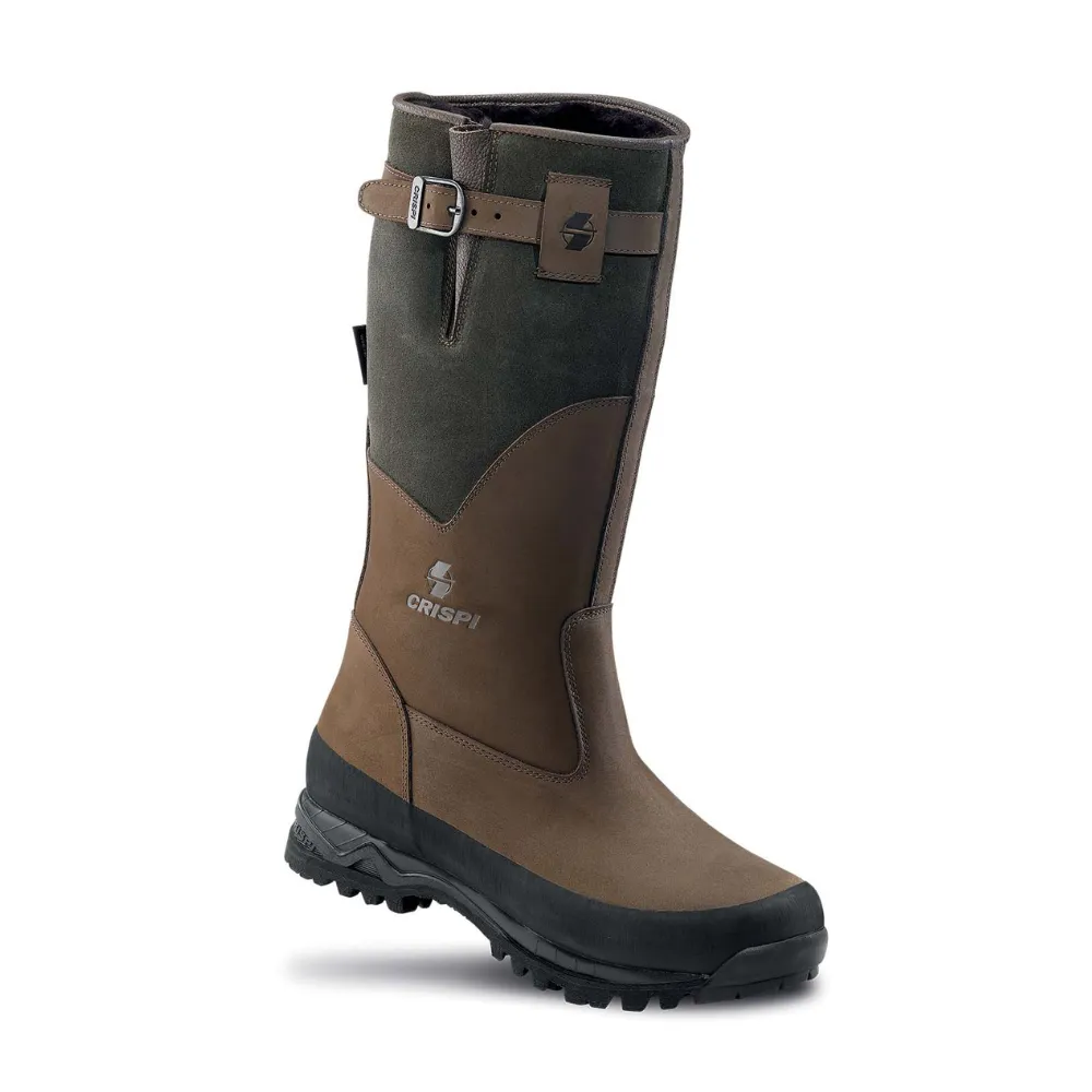 Gojzerice Crispi Finland GTX izrađene su za lovce koji se kreću u hladnim i zahtjevnim uvjetima. Unutarnja podstava od GORE-TEX® membrane i prave janjeće vune osigurava toplinu i udobnost čak i pri niskim temperaturama. Bočni zatvarač omogućuje brzo obuvanje, dok se remen s kopčom na ovratniku lako prilagođava za sigurno i čvrsto prianjanje.