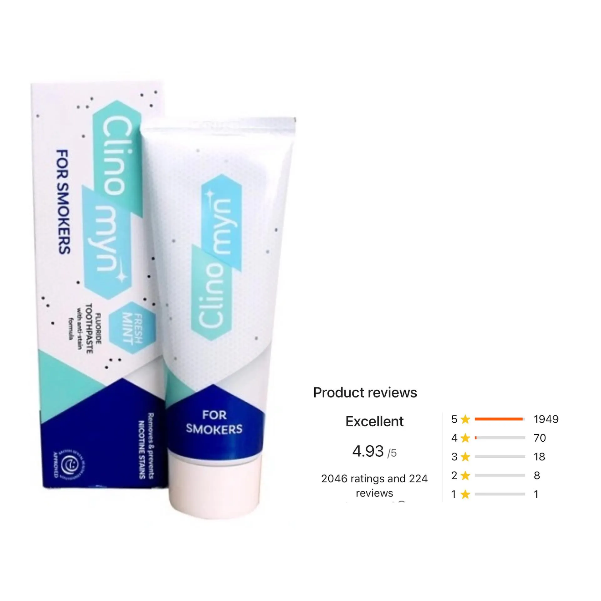 Britanska zaklada za zdravlje zuba preporučuje Clinomyn pastu za zube pušačima koji žele ukloniti mrlje nastale zbog unosa nikotina i osvježiti dah, kao i onima koji žele poboljšati izgled svojih zubi i osmijeh.