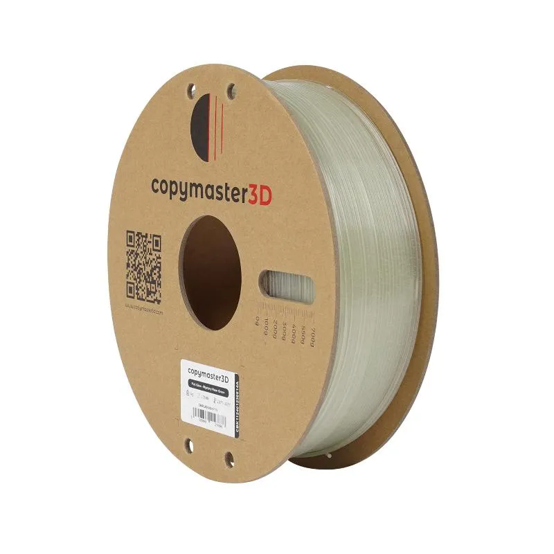PLA filament koji u mraku svijetli u zelenoj boji, a na svjetlu izgleda kao bezbojni (natural) PLA.