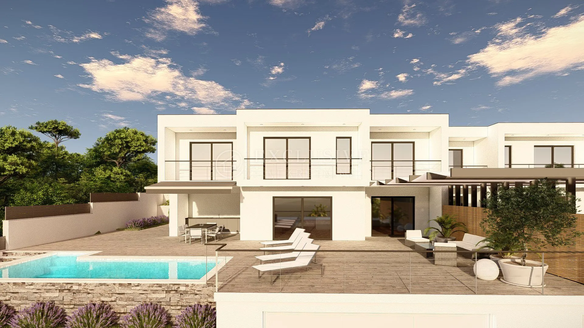 MODERNA VILA SA BAZENOM, LOUNGE ZONOM I PANORAMSKIM POGLEDOM NA MORE! Nalazi se na mirnome mjestu ponad Crikvenice, okružena je prirodom, u susjedstvu modernih vila. Činiti će je prizemlje i prvi kat, orijentacija će biti sjever-jug, a sa južne strane u suterenu će imati garažu veličine 46m2 koja je dostatna za parking 2 automobila. Prizemlje će se sastojati od natkivenoga ulaza, hodnika, wc-a, stepeništa za kat, spremišta, vešeraja, te open space dijela kojega će činiti dnevni boravak, kuhinja i blagovaona. Čitav dnevni dio će imati izlaz na prostranu terasu na kojoj će se nalaziti ljetna kuhinja, lounge zona, veliko sunčalište te infiniti bazen. Na katu će se nalaziti predsoblje te tri spavaće sobe, svaka sa vlastitom kupaonom i izlazom na vlastitu loggiu. Iz cijelog prizemlja (što uključuje i bazen), a pogotovo sa kata, će se pružati panoramski pogled na grad, more i otok Krk koji nikada neće biti zaklonjen! Predviđeni materijali u gradnji, a isto tako i u završnoj opremi su vrhunske kvalitete, pa će tako ova moderna vila raspolagati sa protuprovalnim vratima, prvoklasnom keramikom, podnim grijanjem, klimama, PVC stolarijom sa komarnicima i elektro pokretanim roletama, led rasvjetom itd... Gradnja kreće polovinom 09/2022. godine, a završetak će ovisiti o dogovoru sa budućim kupcem. S obzirom na provjerenoga investitora, možemo garantirati urednu vlasničku dokumentaciju te jednostavan i brz prijenos vlasništva! MIRNA LOKACIJA, VRHUNSKA KVALITETA, BAZEN I PANORAMSKI POGLED SU GLAVNI RAZLOZI RADI KOJIH ŽELITE ISKORISTITI OVU PRILIKU!! OVO JE PREKRASNA MODERNA VILA KOJA JE POGODNA KAKO ZA VLASTITU UPOTREBU TAKO I ZA TURISTIČKE SVRHE!! OBRATITE NAM SE SA POVJERENJEM - PREPORUČAMO!! ID KOD AGENCIJE: 1486 Ured Office Mob: +385 91 887 5855 Tel: +385 51 498 068 E-mail: info@exclusive-nekretnine.hr www.exclusive-nekretnine.hr