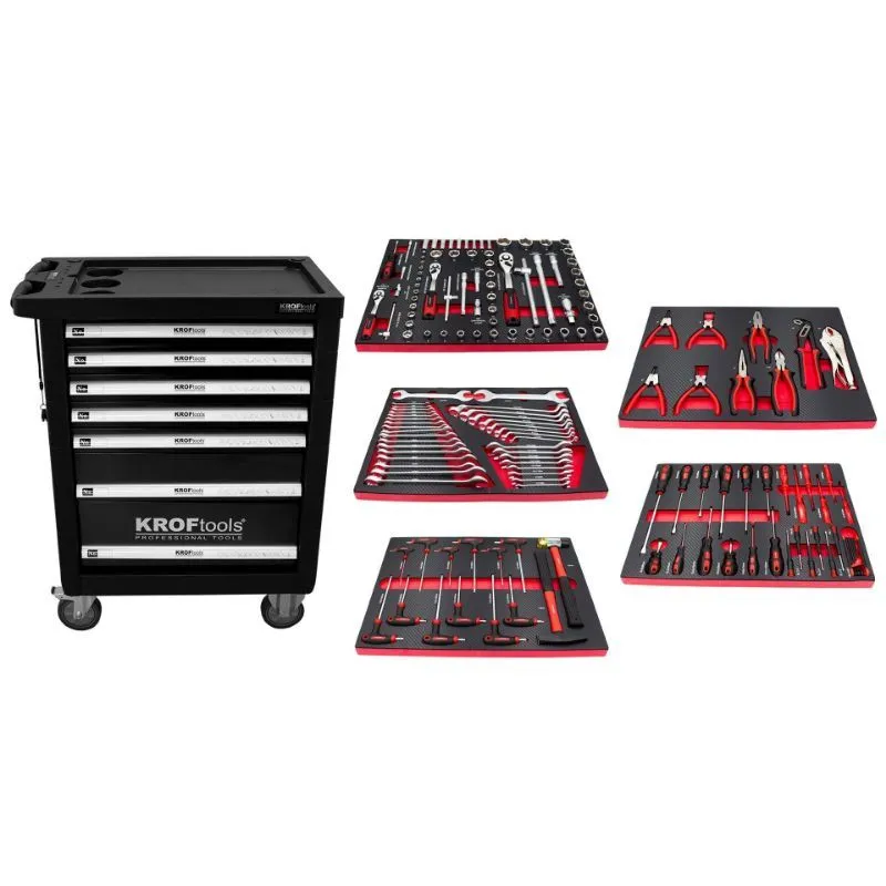 Kolica za alat sa 7 ladica i 160 dijelova nude kompletno, organizirano i praktično rješenje za svaku radionicu, servis ili garažu.