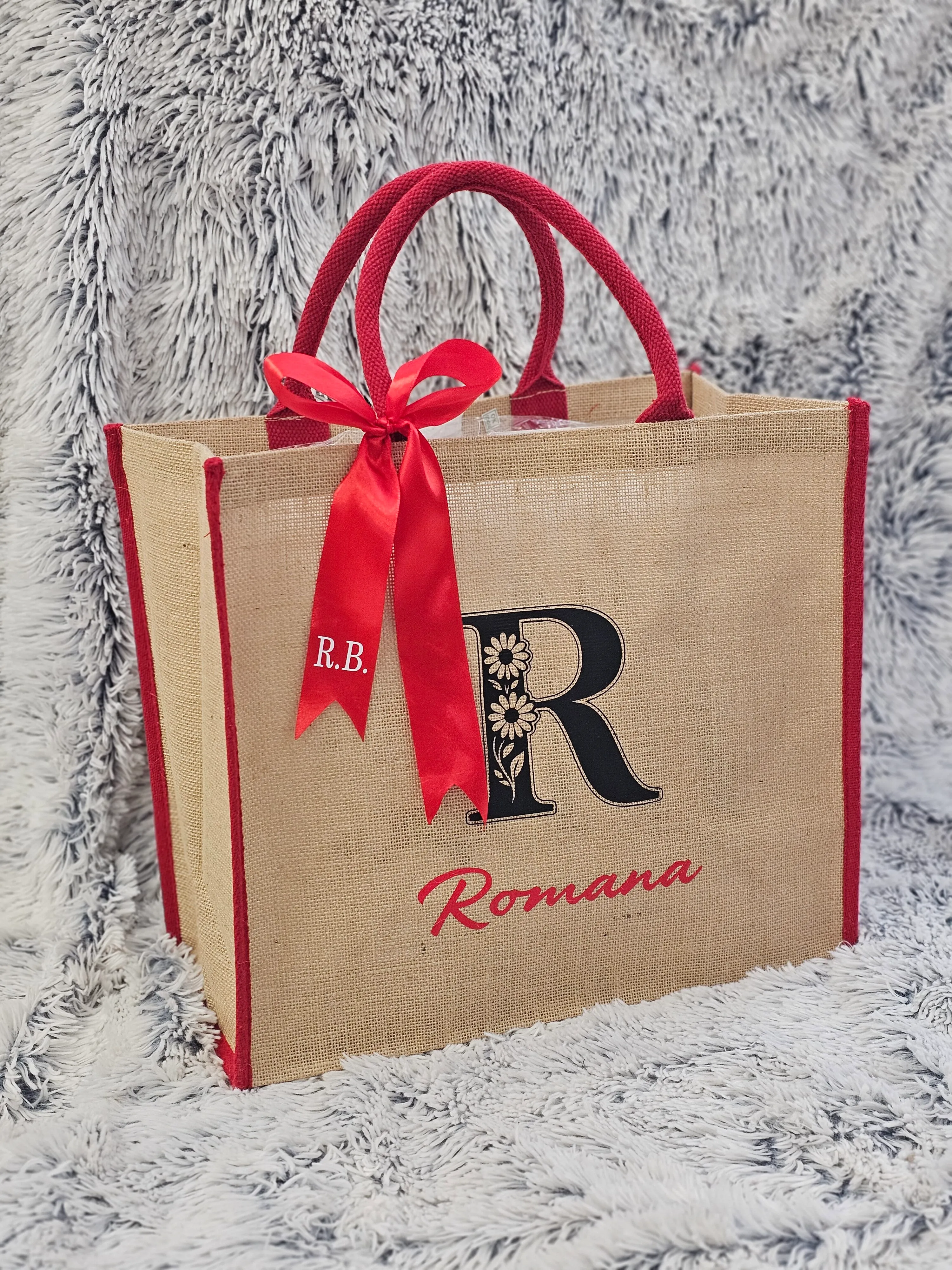 Tražiš praktičan, moderan i osoban poklon? Naša personalizirana jutena torba s početnim slovom idealan je izbor. Izrađena od čvrste jute i ukrašena elegantnim slovom s cvjetnim motivom, ova torba je savršena za svakodnevnu upotrebu – posao, shopping ili kao poklon za posebnu prigodu.