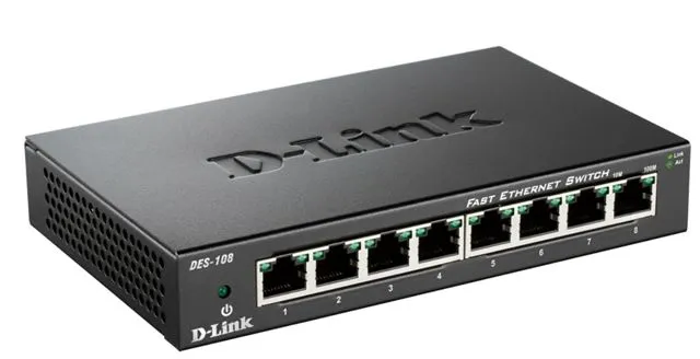DES-108/E, 8x 10/100Mbps, desktop, fiksna konfiguracija, 1U, unamanaged, Layer 2, metalno kućišta, Napajanje vanjsko