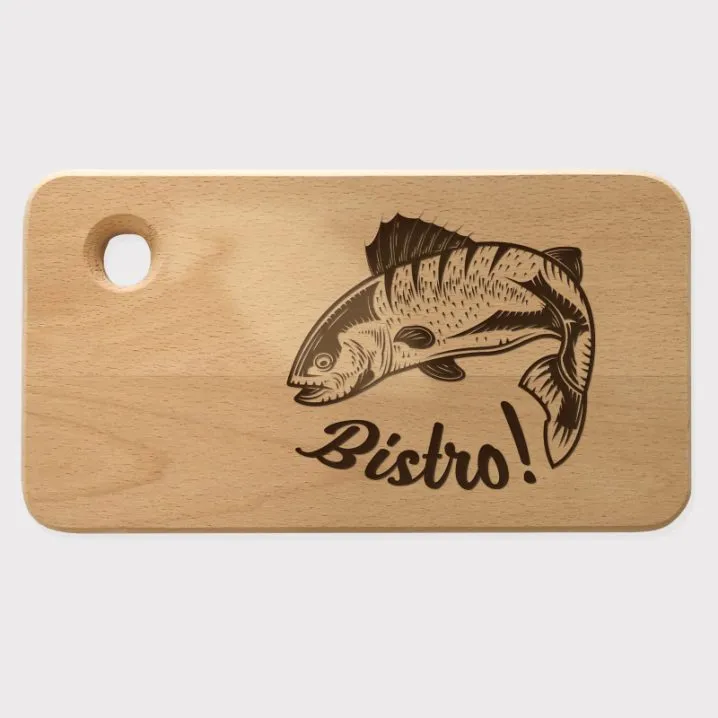 Idealna kuhinjska daska za rezanje- za ribiče. Iznenadi njega ovom daskom za rezanje na kojem je poznat ribički pozdrav “Bistro”! Predloži da ti se oduži jednim ukusnim obrokom iz majstorske kuhinje.