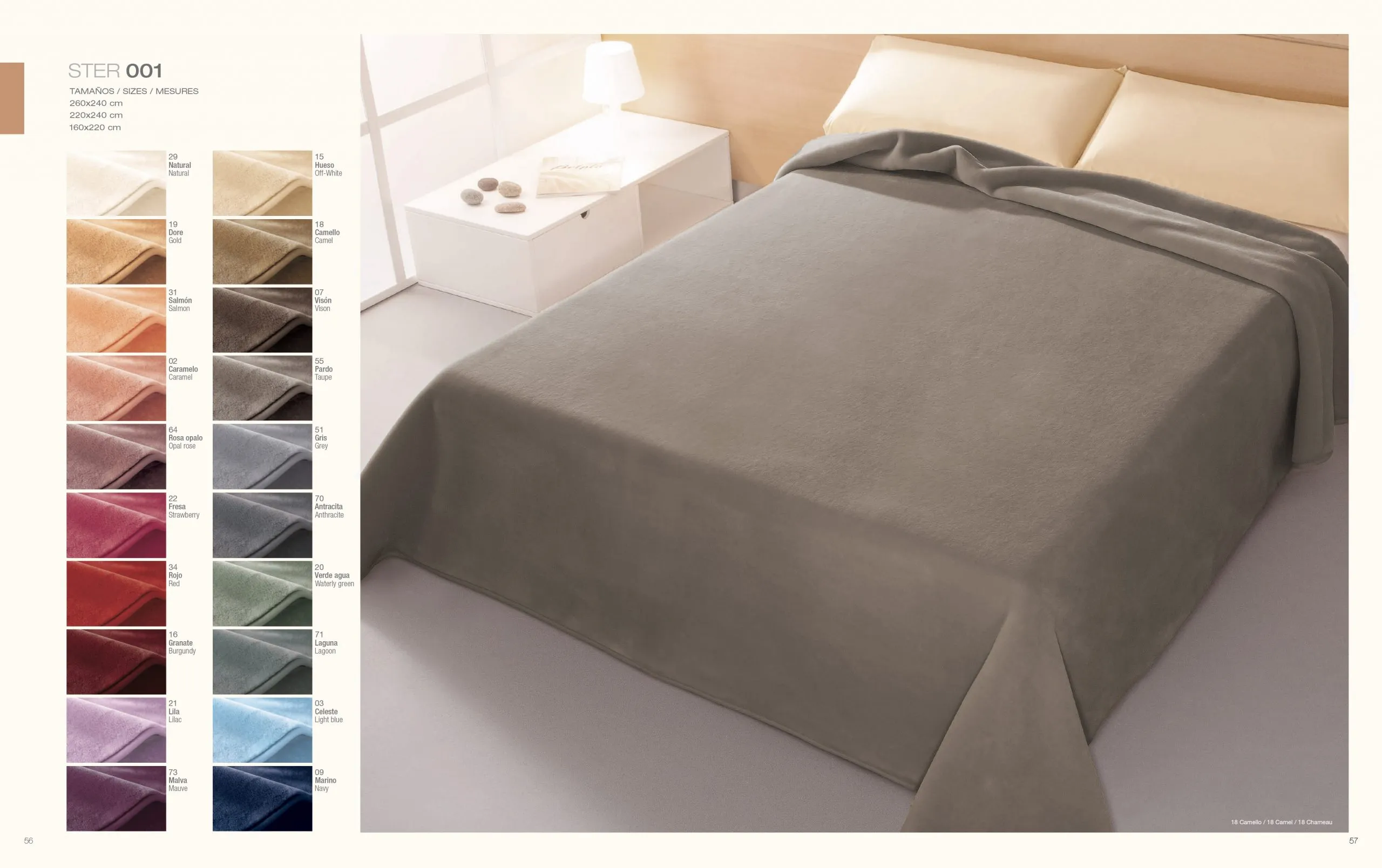 Deka Ster-001 160×220 cm dolazi u 15 različitih boja: antracit, bež, crvena, camel, karamel, lila, bijela, opal rosa, srednje plava, tamno plava, saumon, siva, taupe, vison i kričavo zelena.