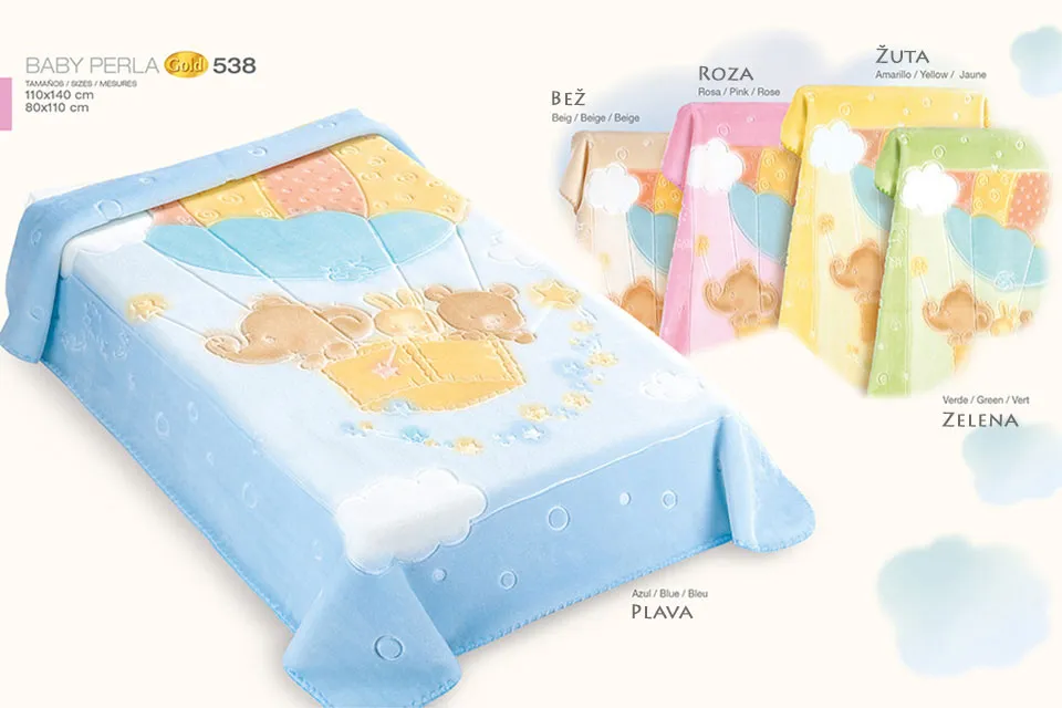 Deka za bebe perla-gold-538 80×110 cm proizvod Belpla. Belpla je španjolski proizvođač koji se bavi proizvodnjom vrhunskih deka preko 50 godina i u svojoj ponudi ima velik izbor proizvoda čija kvaliteta i dizajn dolazi iz dugogodišnje tradicije i programa koji stvaraju najbolji dizajn i kvalitetu sa najnovijom tehnologijom. Proizvodnja u Španjolskoj i unutar Europske unije garantiraju maksimalnu kvalitetu, najviše standarde u proizvodnji i materijalima te potpunu kontrolu kvalitete. Sastav: 100% akrilno vlakno