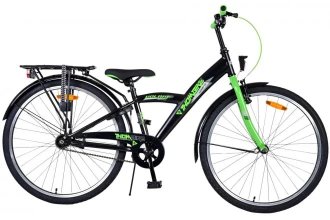 Dječji bicikl Volare Thombike 26" crno-zeleni Volare 26-inčni Thombike dječji bicikl spaja vrhunsku kvalitetu s modernim dizajnom! Sigurnost je na prvom mjestu! Zato ovaj cool bicikl ima ručnu kočnicu, nožnu kočnicu i svjetla na baterije sprijeda i straga. Osim toga, bicikl ima lijepo zvono i katadioptere (mačje oči) na kotačima. Mislilo se i na udobnost. Prekrasan crni Volare bicikl sa zelenim detaljima ima luksuzno mekano sjedalo i posebno meke ručke, praktičan stražnji nosač i čvrsti okvir. Nadalje, bicikl ima nogicu tako da uredno ostaje na mjestu i snažnu bravu. Kako biste što dulje uživali u biciklu, upravljač i sjedalo su podesivi po visini. Ukratko: vrhunski bicikl u kojem će vaše dijete uživati godinama! Visina sjedala: 61-80 Bicikl dolazi 85% sastavljen, što ga čini izuzetno lakim za sastavljanje. Pogledaj više: https://sarenikutak.hr/trgovina/djecji-bicikli/djecji-bicikli-26/djecji-bicikl-volare-thombike-26-crno-zeleni/