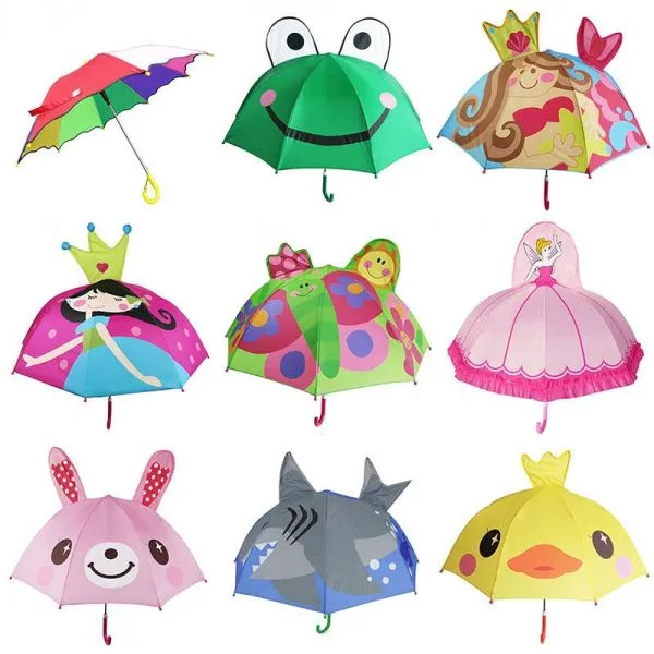 Ovi šareni dječji kišobrani imaju neobičan dizajn inspiriran različitim životinjama i drugim predmetima (pčele, žabe, patke, krave, lopte...).