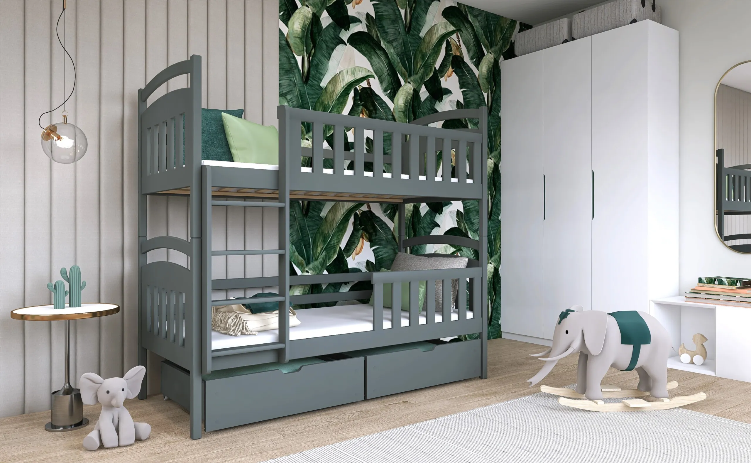 Ako imate dvoje djece i ograničen prostor, krevet na kat Sebus pruža idealno rješenje. Kompaktnih dimenzija, ali maksimalne funkcionalnosti, omogućuje udoban i siguran san za oboje mališana.