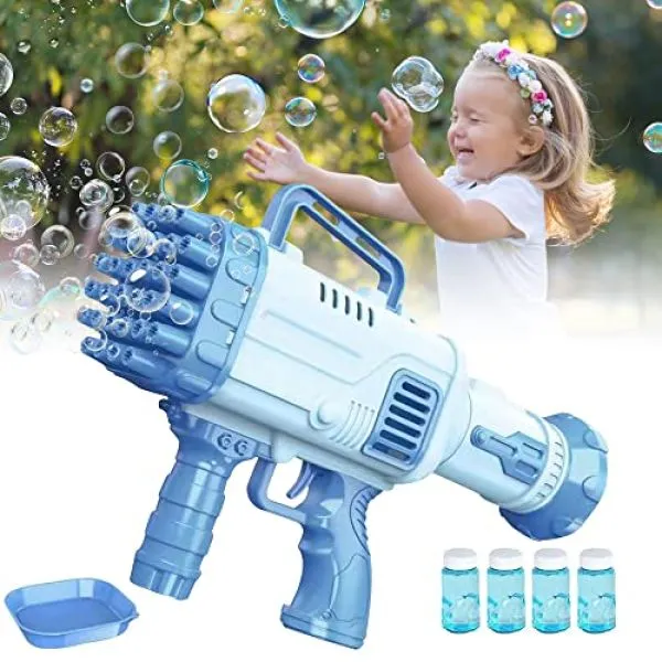 Zabavna puhalica koja stvara nalet mjehurića zraka i radi na baterije. Dodirnite tekućinu s mjehurićima, povucite okidač i ogromna količina mjehurića će biti izbačena! U paketu s pištoljem uključena je i tekućina za mjehuriće.