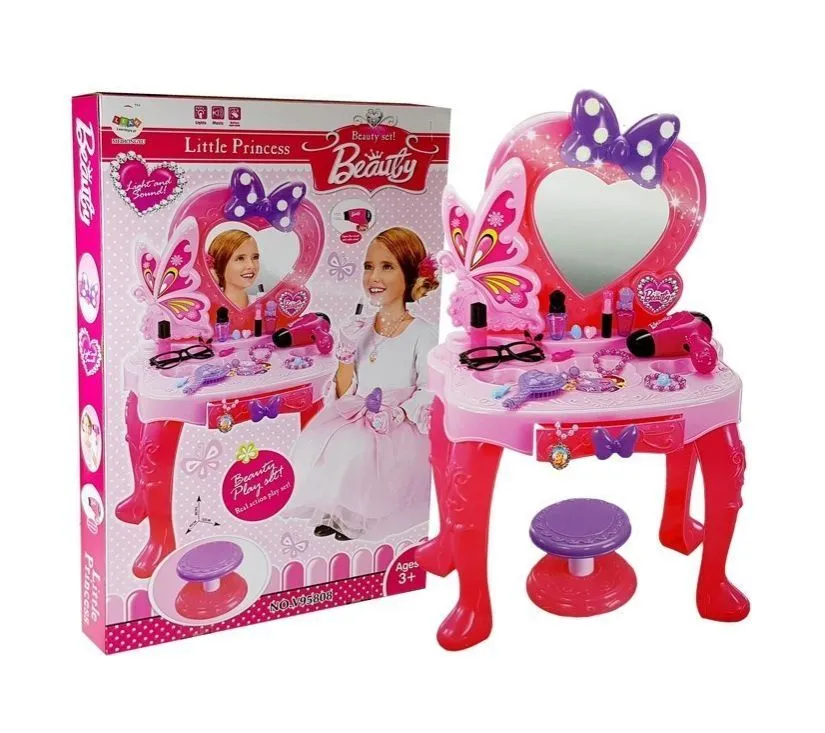 Većina djevojčica od malih nogu želi se osjećati posebno i lijepo. Nerijetko se događa da majkama kradu čak i kozmetiku i nakit! Od sada se vaša djevojčica može šminkati sa svojom mamom i učiti osnovne principe ljepote. Šarmantni set ne samo da će okupirati malu princezu mnogo sati, već će joj pružiti puno osmijeha. Šarmantan set u dvije nijanse roze s elementima ljubičaste omogućit će svakoj princezi da se igra pred ogledalom od samog jutra. Ogledalo je izrađeno od sigurne plastike u kojoj će mala princeza vidjeti svoje lijepo lice. Igračka je dizajnirana imajući na umu najmlađe djevojčice, zbog čega je izrađena od certificiranih, potpuno sigurnih materijala. Dizajn toaletnog stolića i dizajn toaletnog stolića dodaju šik i eleganciju. Set uključuje mnoge elemente. Fen nakon umetanja baterija i pritiska na tipku proizvodi zrak kao pravi uređaj. Set uključuje prekrasnu stolicu promjera 19,5 cm. Stol ima udubljenja na vrhu za dodatke i ladicu na izvlačenje, što olakšava spremanje sitnica kao što su kopče i gumice za kosu. S Komponente kompleta: - elementi za sastavljanje - Visoki stolac - sušilo za kosu - četka za kosu - dvije narukvice - dvije bočice parfema - imitacija ruža za usne - imitacija sjajila za usne - naočale - naušnice - ogrlica - dvije ukosnice (plava i roza) - četiri prstena (dva plava, dva ružičasta) Dimenzije toaletnog stolića: 32 cm x 46 cm x 74 cm Veličina paketa: 76,5 cm x 50 cm x 9 cm Zbog sitnih elemenata igračka je namijenjena djeci starijoj od 3 godine. Toaletni stolić se napaja s dvije 1,5V AA baterije (nisu uključene), fen se napaja s jednom 1,5V AA baterijom (nisu uključene). Set je upakiran u kutiju s ručkom koja je savršena kao poklon vašem djetetu. Pogledaj više: https://sarenikutak.hr/trgovina/igracke-djeca-i-bebe/igracke/setovi-za-igru/djecji-toaletni-stolic-za-djevojcice-s-ogledalom-zvukom-i-svijetlom/