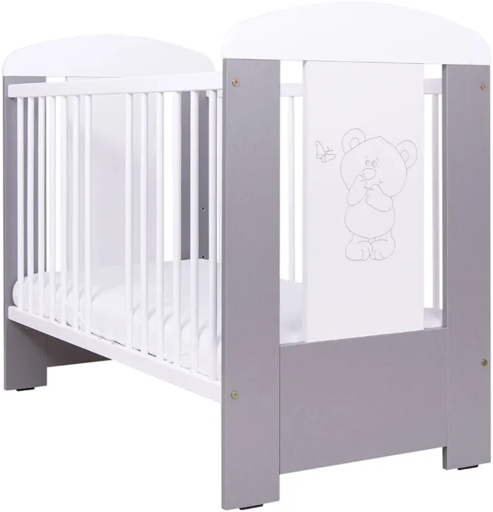 Opis proizvoda: - verzija s bočnim spuštanjem - okrugle uklonjive prečke Dimenzije: 65x98x123 cm Pogledaj više: https://sarenikutak.hr/trgovina/igracke-djeca-i-bebe/djecja-soba/namjestaj-za-djecju-sobu/krevetici/drewex-djecji-krevetic-medvjed-i-leptir-srebrna-i-bijela-sa-spustenom-stranicom-120x60-cm/