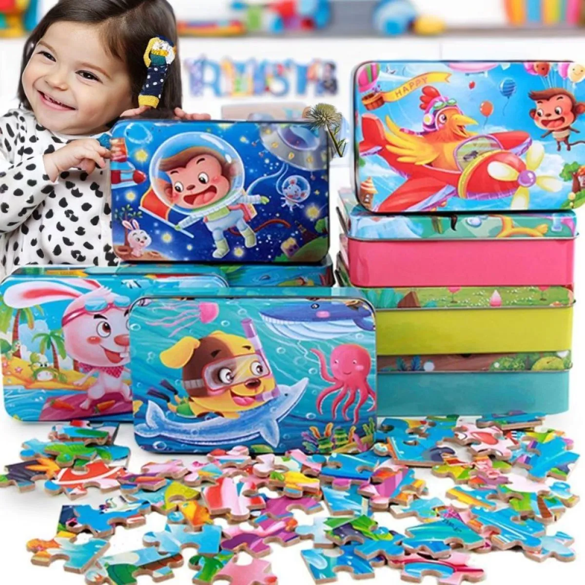 Rešavajući slagalicu dijete zadovoljava prirodnu unutrašnju potrebu da popuni cjelinu dijelovima koji nedostaju, Kada jednom dođe do cilja i osjeti radost zbog uspešnog rješavanja ovako teškog zadatka uglavnom ne odustaje, Počinje samo da traži nove intelektualne izazove, tko nauči da slaže slagalice naučiti će i da riješava probleme sa kojima se susreće, Svaka slagalica je sa zadnje strane obilježena grafičkim elementom koji olakšava sortiranje, Metalna kutija je idealna za čuvanje i nošenje – za igru kod kuće, vani, u autu,,, Preporučeni uzrast: za djecu stariju od dvije godine