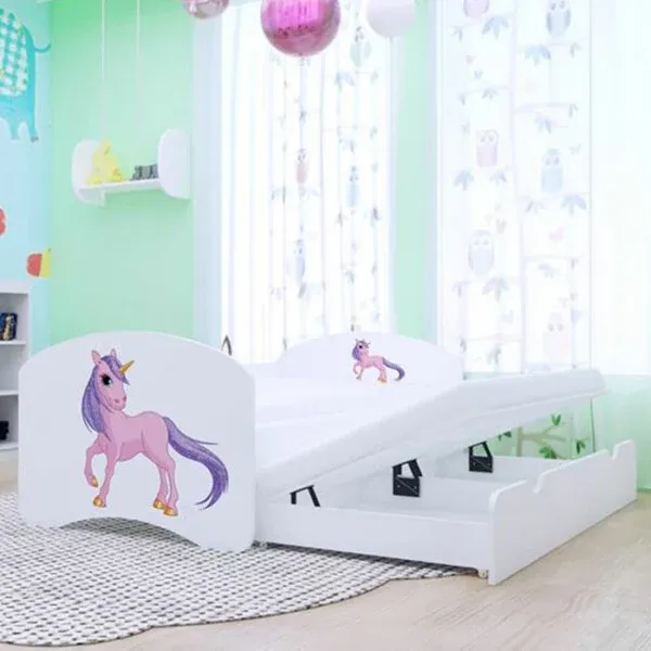 Drveni dječji krevet Happy jednorog s dodatnim ležajem – 180×90 - 398622712645