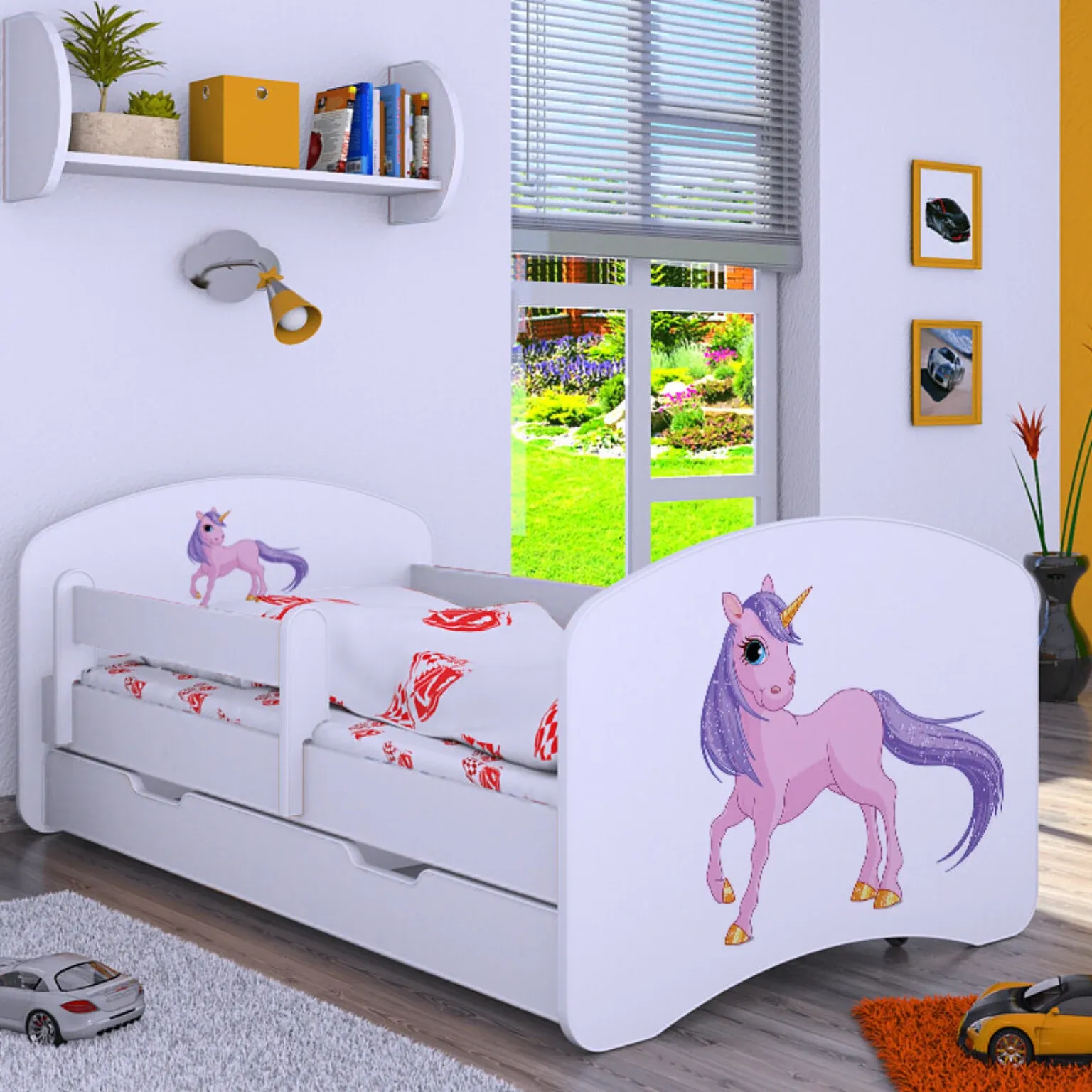 Drveni dječji krevet Happy jednorog s ladicom – 160*80 - 966514678385