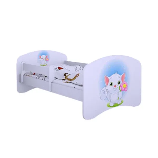 Drveni dječji krevet Happy maca s cvijetom bez ladice – 140*70 - 821132389116