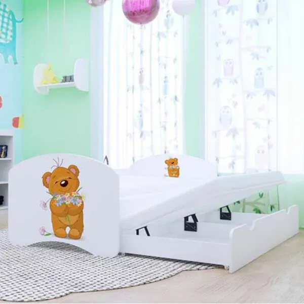 Drveni dječji krevet Happy medo s cvijećem s dodatnim ležajem – 160×80 - 179995406402
