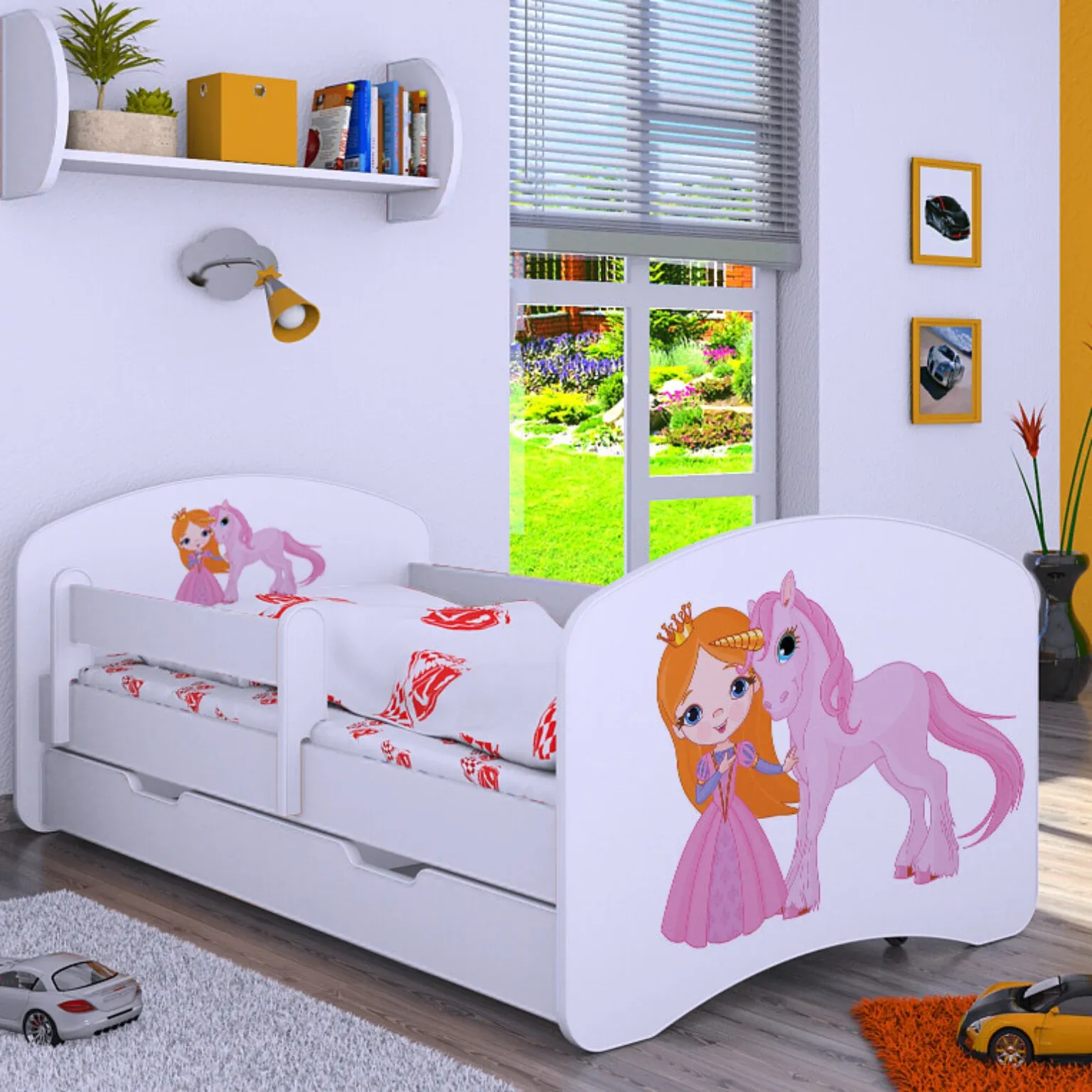 Drveni dječji krevet Happy princeza i jednorog s ladicom – 160*80 - 64085864151