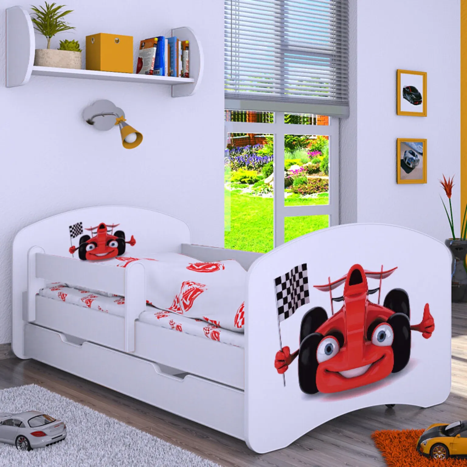 Drveni dječji krevet Happy trkaći auto s ladicom – 190*90 - 803581745224