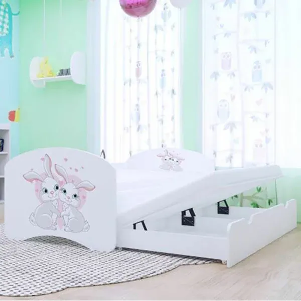 Drveni dječji krevet Happy zečići s dodatnim ležajem – 180×90 - 234823503665