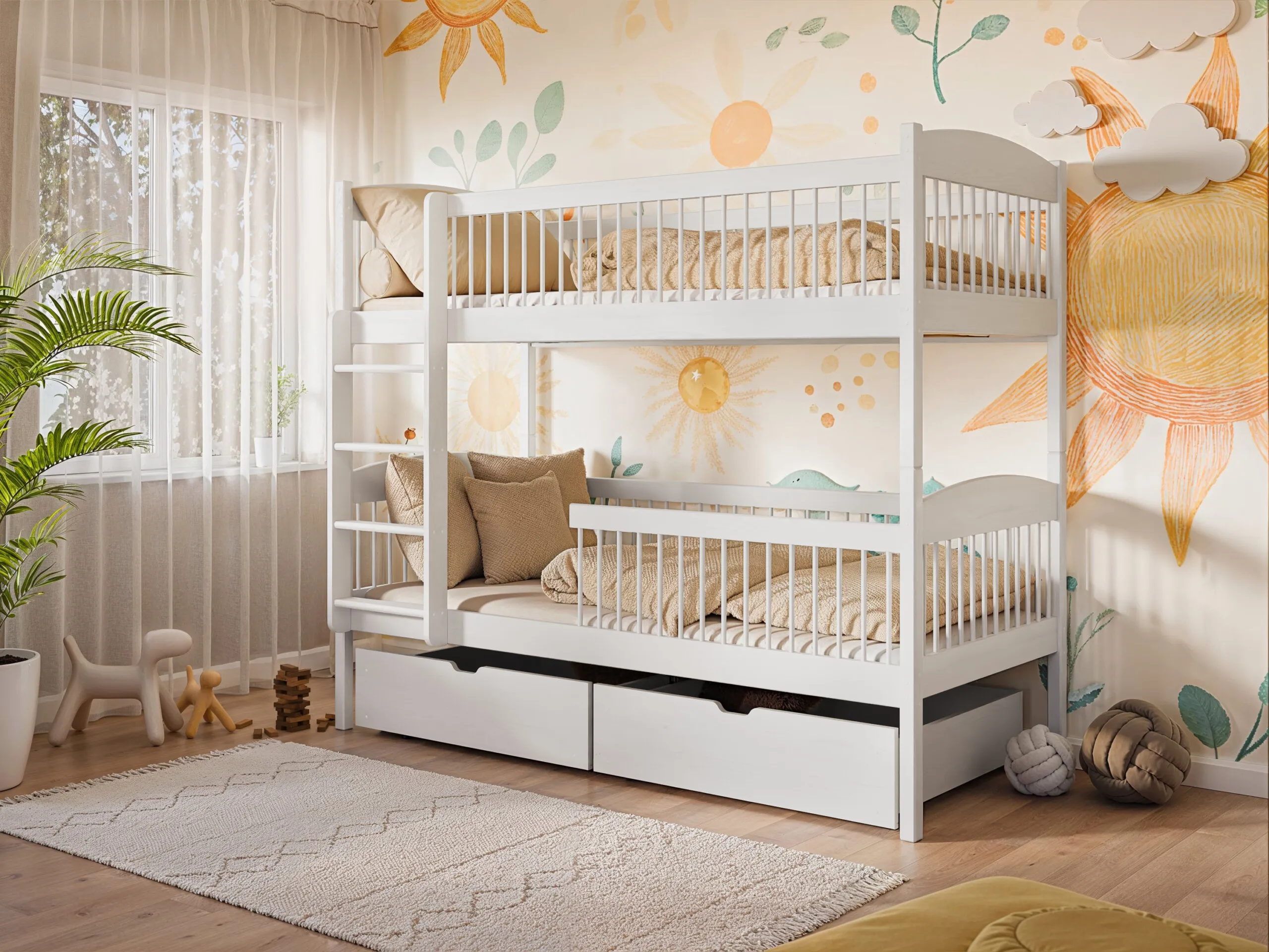 Ako imate dvoje djece i ograničen prostor, krevet na kat Luna pruža idealno rješenje. Kompaktnih dimenzija, ali maksimalne funkcionalnosti, omogućuje udoban i siguran san za oboje mališana.