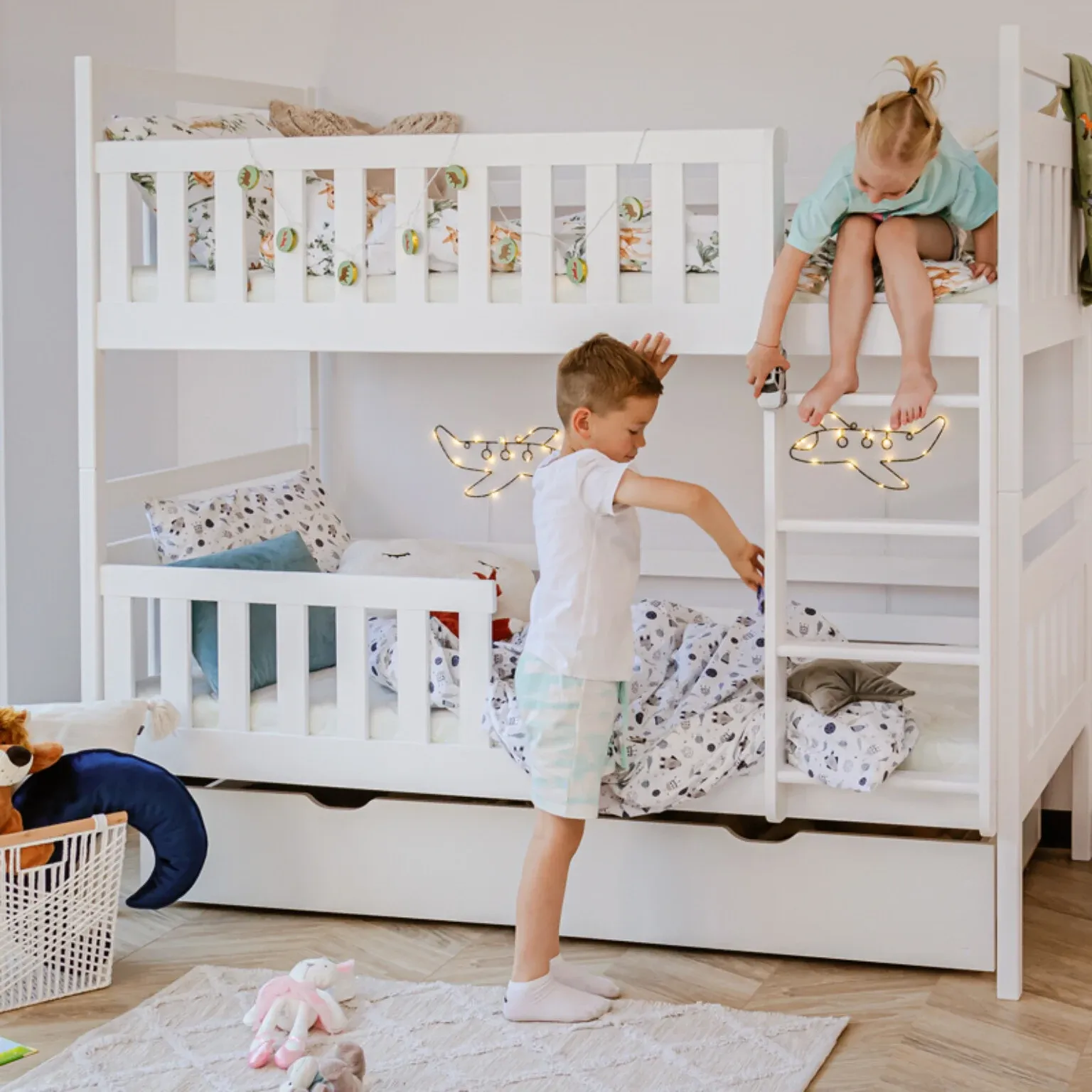 Ako imate dvoje djece i ograničen prostor, krevet na kat Monika pruža idealno rješenje. Kompaktnih dimenzija, ali maksimalne funkcionalnosti, omogućuje udoban i siguran san za oboje mališana.