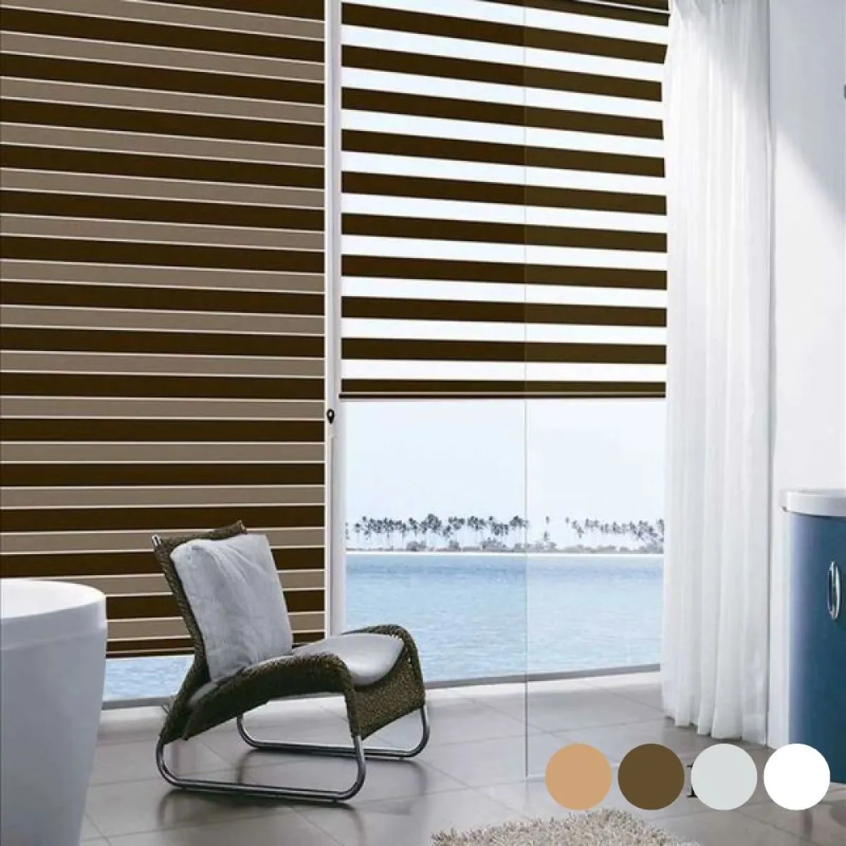 Ova elegantna rolo zavjesa je pametan izbor za moderne kuće, a može biti stilska alternativa za tradicionalne ili vertikalne trakaste zavjese. Ova rolo zavjesa ima dvije izmjenične paralele linije od transparentne i matirane tkanine. Jednostavno podešavanjem položaja zavjese možete uskladiti linije zavjesa na taj način da ćete stvoriti jedinstveni efekt filtriranja svjetla, koji je pogodan za bilo koji suvremeni životni prostor. Rolo zavjesa je izrađena od 100% poliestera. U kompletu dolazi s bijelim lancem za povlačenje koji jednostavno montirate i rukovate.