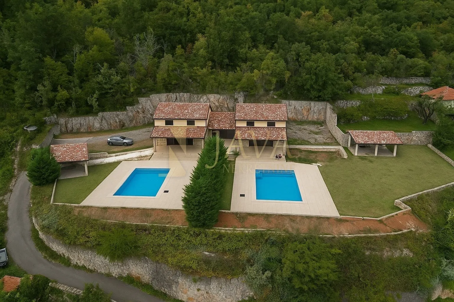 Iznad Ičića i jedne od najvećih ACI marina u Hrvatskoj na prodaju se nude dvije novosagrađene kuće sa dva bazena. Kuće krasi nesmetani pogled na Kvarnerski zaljev, otoke Krk i Cres. Kuće karakterizira spajanje tradicijskog i modernog mediteranskog stila, a prodaju se u fazi visoki roh bau. U gradnji i opremanju vile korišteni su vrhunski materijali, prizemlje je u izvornom istarskom kamenu, fasada dermit žbuka od 12 cm, PVC stolarija od 6 komora. Stambeni prostor kuće: 140m2- prostrano prizemlje sa blagovaonicom, kuhinjom i dnevnim boravkom ima izlaz na natkrivenu terasu od 32m2. U prizemlju se nalazi soba sa kupaonom koja je prilagođena za osobe sa invaliditetom, sauna, wc za goste i prostor za vešeraj. Unutarnje stepenice vode na prvi kat na kojem su smještene tri spavaće sobe od kojih svaka ima vlastitu kupaonicu. Svaka kuća ima svoj bazen, od 32 m2, sunčalište i ljetnu natkrivenu kuhinju sa roštiljem. POSEBNOSTI; 8 spavaćih soba, dva bazena mirna lokacija sa predivnim panoramskim pogledom blizina ACI Marine, plaže Ičići Za dodatne informacije ili dogovor oko razgledavanja, slobodno se obratite. Poštovani klijenti, agencijska provizija naplaćuje se u skladu s Općim uvjetima poslovanja koji su dostupni na stranici https://java-nekretnine.hr/opci-uvjeti-poslovanja USLUGA KREDITNOG POSREDOVANJA I FINANCIJSKOG SAVJETOVANJA Java nekretnine pružaju besplatnu uslugu kreditnog posredovanja, uspoređujući ponude više banaka na jednom mjestu. Naš financijski stručnjak pruža stručno financijsko savjetovanje, objašnjava sve dostupne opcije te vas vodi kroz cijeli proces – od početnih konzultacija do isplate kredita – kako biste donijeli informiranu i sigurnu financijsku odluku, u skladu s vašim potrebama. ID KOD AGENCIJE: 4655 JENNY K Mob: 0953859903 Tel: +385 51 588 555 E-mail: jenny@tobase.consulting www.java-nekretnine.hr