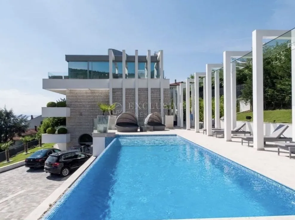 Kuća Vila za prodaju, Opatija, Prodaje se luksuzna vila moderne arhitekture smještena na padinama iznad marine u Ičićima, na lijepo uređenom zemljištu površine 2.300 m2. Površine je 600 m2 i prostire se na 3 etaže koje su povezane unutarnjim liftom. U prizemlju se nalazi SPA zona sa bazenom, saunom i fitnessom koji izlaze na prostranu terasu sa sunčalištem i relax zonom ispred koje se nalazi poseban „zid tuš“ koji noću kada se upali, zajedno s ambijentalnom vrtnom rasvjetom, stvara poseban ugođaj. U prizemlju se nalazi i jedna spavaća soba sa kupaonicom, te vinski podrum sa cigar sobom. Na prvom katu smješten je prostrani dnevni boravak s kuhinjom, blagovonicom i kupaonicom. Iz open space dnevnog se izlazi na prostrane terase s pogledom na more. Tu se nalaze još dvije spavaće sobe sa en-suite kupaonicama, toalet, garderobna soba i spremište. Na drugom katu nalazi se master spavaća sobe s en-suite kupaonicom i garderobom, s izlazom na veliku terasu, te još jedna spavaća soba sa svojom kupaonicom i terasom. Interijer vile: SMART HOME sustav upravljanja, centralno podno grijanje + klima, kvalitetna ALU vanjska stolarija, kamen Cotto d'Este i tikovina iz Burme u wellness zoni, parket Listone Giordano (dužine 1.5-2 m) u dnevnom boravku, spavaćim sobama i kupaonicama, unutarnja i vanjska rasvjetna tijela su marke iGuzzini, dio fasade pokriven bračkim kamenom. Alarm i video nadzor: prilaz vili je kroz uređeni i noću osvjetljeni kameni put i kapiju, sigurnosno je zaštićen s alarmom i s najsuvremenijim sustavom video nadzora. Parking je omogućen garažom za dva automobila (54 m2). Tehnička soba sa bazenskom opremom, sustavom grijanja i hlađenja. ID KOD AGENCIJE: 2196 Dražen Barišić Agent s licencom Mob: +385 (0) 91 887 5855 Tel: +385 (0) 51 498 068 E-mail: drazen@exclusive-nekretnine.hr www.exclusive-nekretnine.hr