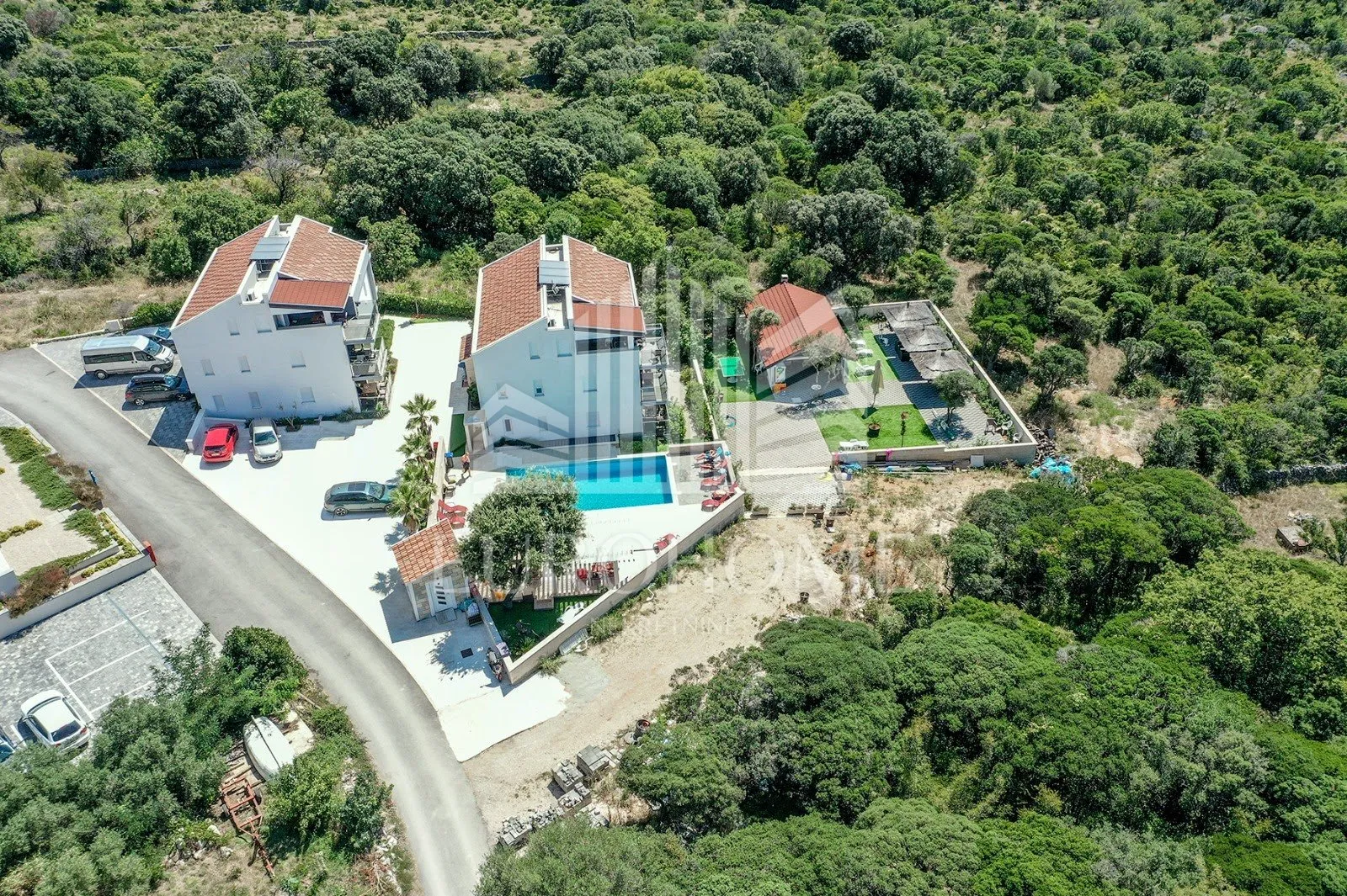 Prodaju u se dvije moderne urbane kuće , svaka veličine 500 m2 na atraktivnoj lokaciji u Novalji predio Škuncini Stani. Kuće su projektirane i izgrađene na zemljištu od 1900m2 kao dvije funkcionalne i zasebne nekretnine identične izgledom. Svaka kuća se sastoji od podruma i 5 apartmana raspoređenih na tri etaže. Tehnički su to suteren, prizemlje i kat no zbog nagiba terena suteren je u biti prizemlje. Na prvoj etaži se nalaze dva dvosobna apartmana. Apartmani imaju posebne ulaze i sastoje se od hodnika, spavaće sobe, kupaonice, dnevnog boravka sa kuhinjom i blagovaonicom. Iz prostranog dnevnog boravka izlazi se na natkrivenu terasu, koja se potom proteže na dvorište s velikim bazenom, sunčalištem, vanjskim tušem i dijelom za druženja. Stepenicama se penje na prvu etažu koja ima isti raspored kao i suteren. Sastoji se se od dva dvosobna apartmana. Apartmani se sastoje od hodnika, spavaće sobe, kupaonice, open space dnevnog boravka sa kuhinjom i blagovaonicom koji imaju izlaz na prostranu natkrivenu terasu. Na drugoj etaži, u potkrovlju kuće se nalazi trosoban penthaus apartman koji se sastoji od hodnika, 2 spavaće sobe, kupaonice i open space dnevnog boravka sa kuhinjom i blagovaonicom koji imaju izlaz na veliku natkrivenu terasu sa prekrasnim pogledom na more. Svi apartmani su u potpunosti namješteni , opremljeni i klimatizirani te kao takvi se prodaju. Tlocrt kuće nalazi se u prilogu. Okućnica je u cijelosti uređena u prekrasnom mediteranskom stilu i ne zahtijeva nikakva dodana ulaganja. Dvorište je prostrano te se u njemu nalazi vrtna sjenica, vanjski kamin sa popratnim sadržajima, bazen i sunčalište. Ispred kuća nalazi se više parkirnih mjesta. Objekti su završeni krajem 2016. godine te su kvalitetno i moderno izgrađeni koristeći kvalitetne materijale. Posjed je odlična prilika za investiciju u turističke svrhe s obzirom na top lokaciju i uhodan posao iznajmljivanja koji donosi ozbiljan prihod. Uhodan turistički najam također je moguće preuzeti. Odlična pozicija gdje do plaže Braničevica i centra Gajca ima cca 600 metara a do plaže Zrče 1200 metara. Blizina svih potrebnih sadržaja za ugodan i miran odmor. Vlasništvo uredno 1/1 i bez tereta Za više informacija zvati na kontakt: Marijana Vladović Mob. : 091 9590 908 Email: marijana@eurohome-nekretnine.hr Web: www.eurohome-nekretnine.hr Agencijska naknada kupcu iznosi 2% + PDV ID KOD AGENCIJE: 2306 Marijana Vladović Savjetnik u prodaji Mob: 091 9590 908 Tel: 01 6231 365 E-mail: marijana@eurohome-nekretnine.hr www.eurohome-nekretnine.hr