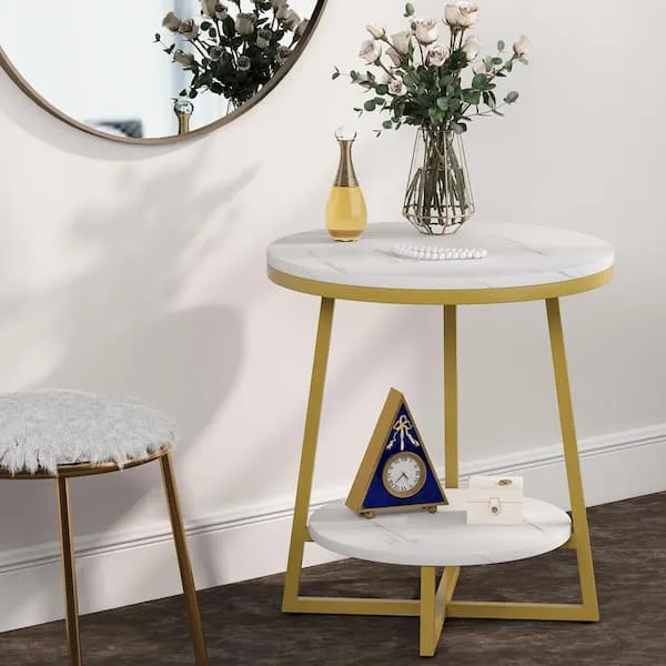Unesite eleganciju i funkcionalnost u vaš dom s ovim modernim stolićem za kavu. Okrugli dizajn bijelog mramora s dvostrukom površinom nudi dovoljno prostora za odlaganje knjiga, časopisa ili šalice čaja. Zlato ili crno postolje dodaje luksuzan i moderan izgled, idealan za dnevni boravak, balkon ili spavaću sobu. S dimenzijama 50 cm x 55 cm, ovaj stolić savršeno se uklapa u svaki kutak vašeg doma, pružajući istovremeno stil i praktičnost.