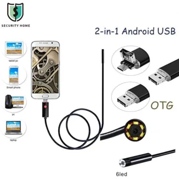 Izvanredna endoskopska kamera sa 6 LED dioda s podesivim svjetlom, koja se spaja na vaš Android pametni telefon ili računalo preko OTG kabla.