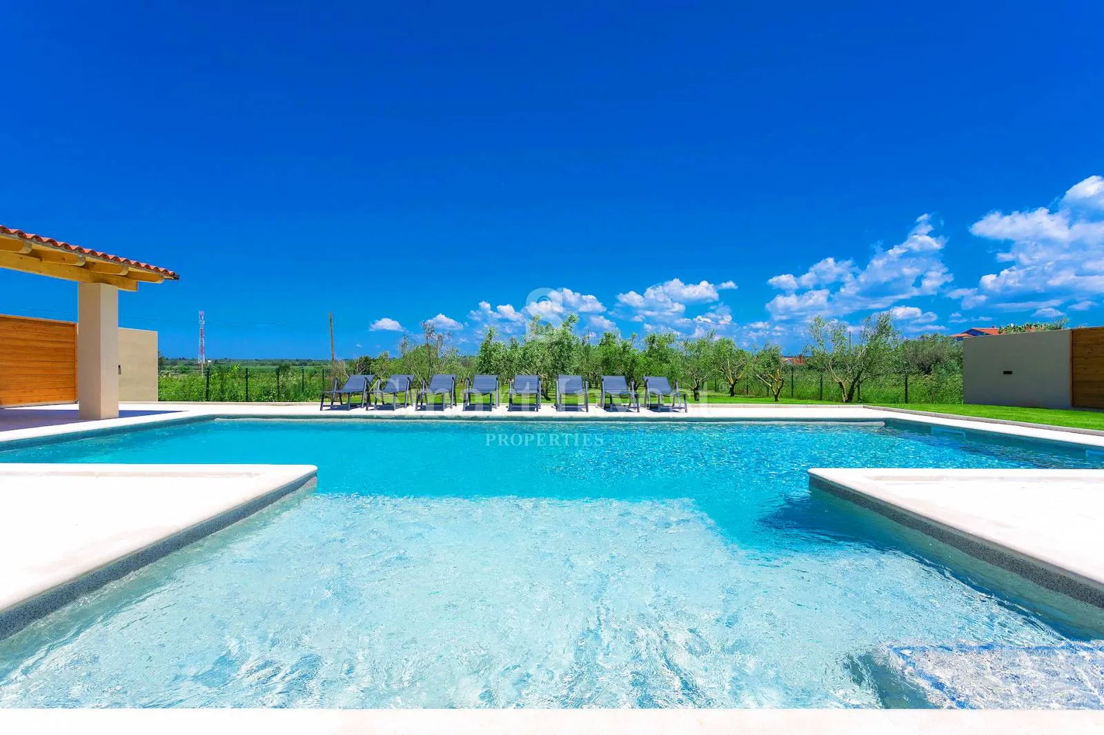 FAŽANA, Moderno uređena vila ukupne povšine od 600 m2, s bazenom, fitnessom i wellnessom, na zemljištu od čak 5.000 m2. Odlična mirna lokacija svega 1 km udaljena od najbliže plaže! Ova prostrana nekretnina je idealan spoj tradicionalnog istarskog stila i modernog uređenja. Odjevena u kamen savršeno se uklapa u sliku istarskog krajolika dok je istovremeno vrhunski moderno opremljena. Ima kapacitet za smještaj do 12 osoba u 6 udobnih i ukusno uređenih spavaćih soba, a pored toga i veliki privatni bazen, sobu za fitness sa spravama i opremom te wellness s jacuzzijem i saunom. Nekretnina se zapravo sastoji od dvije odvojene vile, manje i veće. U prizemlju veće vile se nalazi dnevni boravak s izlazom na terasu, prostrana kuhinja s blagovaonicom, wellness prostorija s jacuzzijem i saunom te fitness soba sa spravama i opremom. Na katu se nalaze četiri spavaće sobe i četiri kupaonice. Vila ima više prekrasnih terasa i balkona. Manja vila se sastoji od konobe i sobe za zabavu s biljarskim stolom i pikadom u prizemlju, dok se na katu nalaze dvije spavaće sobe i dvije kupaonice. Postavljeno je centralno grijanje na naftu i plin, a nekretnina je opremljena i s 11 klima uređaja za hlađenje. Na prostranoj okućnici smjestio se veliki privatni bazen od 72 m2 sa sunčalištem i naktrivenom vanjskom kuhinjom s plinskim roštiljem, veliki travnjak krasi 85 maslina, a osigurano je i dovoljno parking prostora za devet automobila. Lokacija je mirna i sigurna te idealna za odmor ili miran boravak tijekom cijele godine. Najbliža plaža je udaljena svega 1 kilometar, Brijuni – 2 kilometra, u radijusu od 3 kilometra su više od 10 restorana i ostala svakodnevna infrastruktura, zabavni park Jangalooz ili Aquapark udaljeni samo 1.5 km od ville. Pula je udaljena 5 kilometara. Za više informacija i razgled nazovite +385/91/320-0021 ID KOD AGENCIJE: 13029 Agencija Opatija Ovlašteni posrednik Mob: +385/99/320-0008 E-mail: office@smart-invest.hr www.smart-invest.hr
