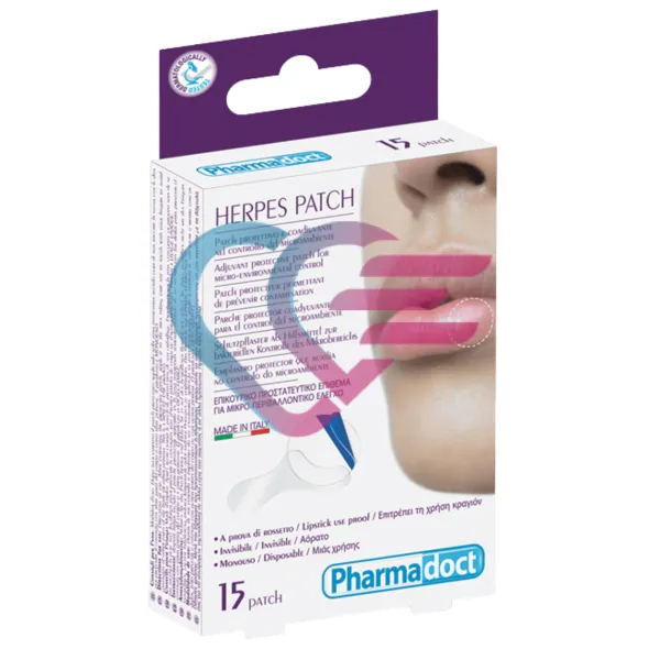 Poliuretanski flaster s hipoalergenim ljepilom obogaćenim hijaluronskom kiselinom diskretno prekriva herpes.