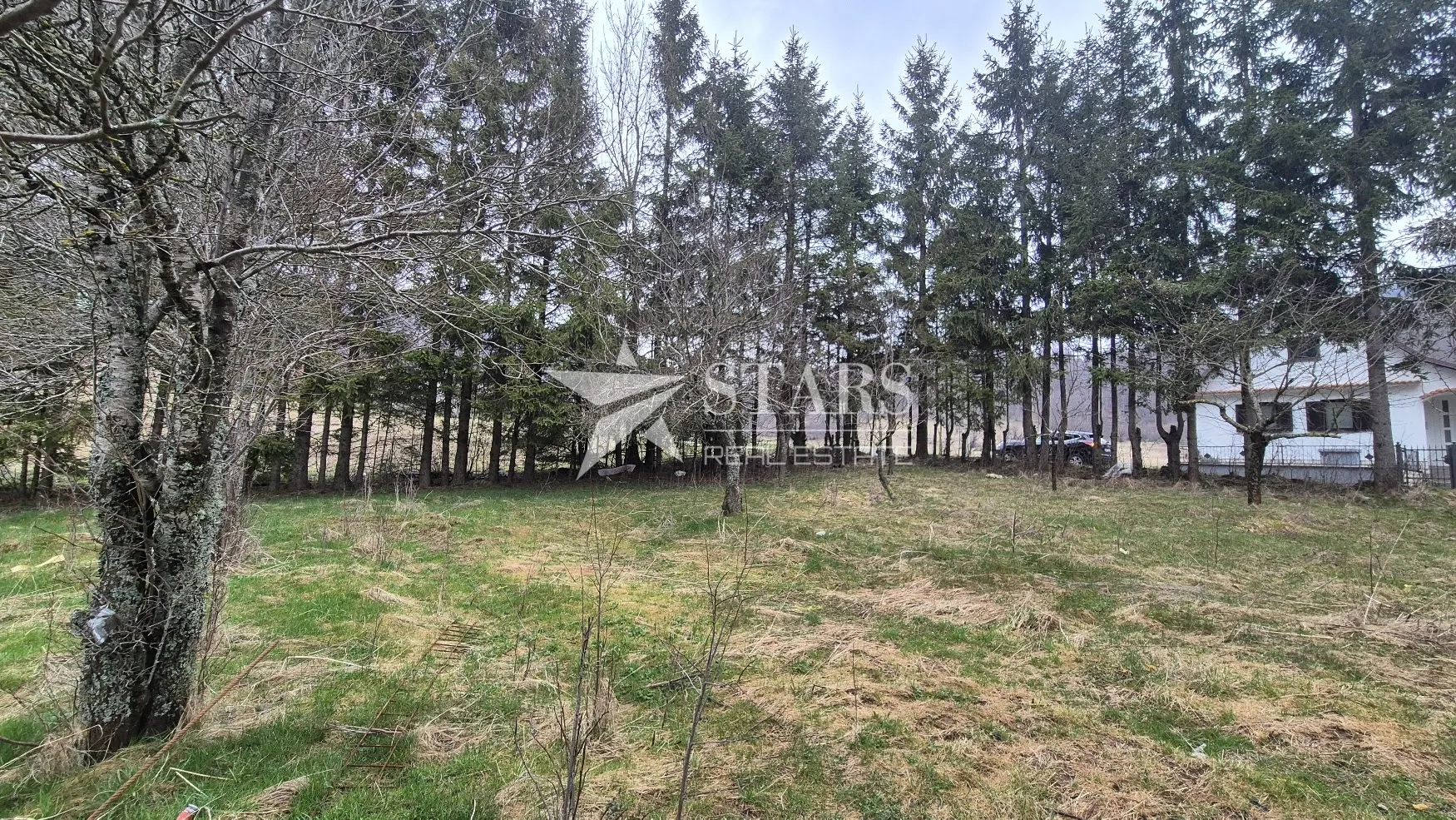 Parcela je pravilnog oblika, blagog pada prema jugoistoku, pružajući izvrsnu osunčanost i predivan panoramski pogled. Na zemljištu su zasađene voćke, dok rubne granice obrubljuje gusti niz elegantnih borova, stvarajući ugodnu privatnu atmosferu i prirodni zaklon.