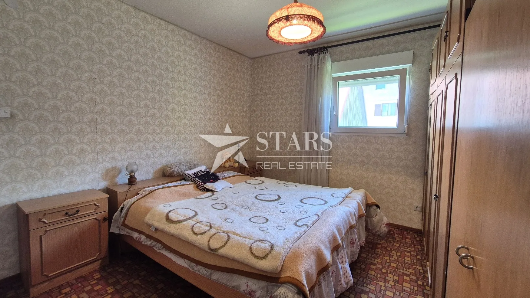 – Stan u prizemlju (75 m²): ulazna veranda, hodnik, kupaonica, dvije spavaće sobe, kuhinja s blagovaonicom i dnevni boravak.