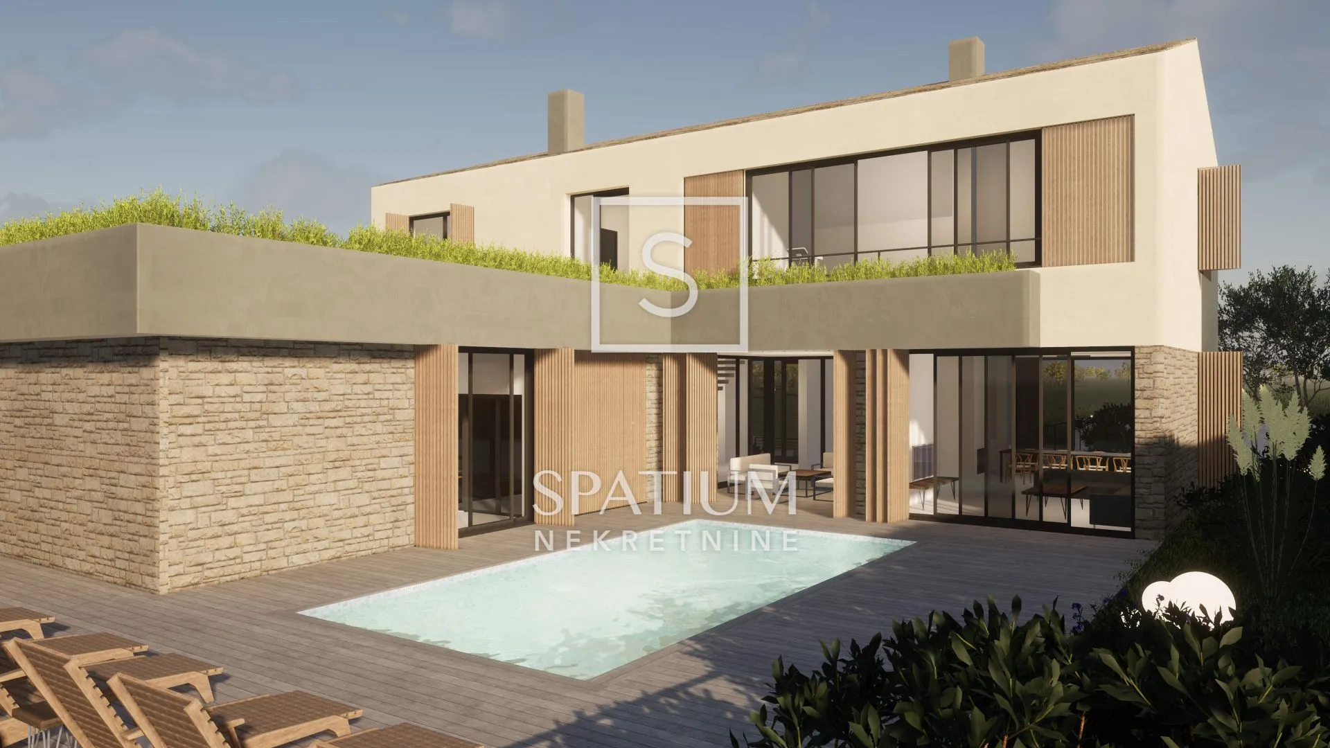 ISTRA, GRAČIŠĆE, u ponudi je ekskluzivna, luksuzna vila smještena u Istri, Gračišće, u mirnom naselju Batlug, nedaleko od grada Žminja. Vila se prostire na površini od 390 m², smještena na zemljištu od 898 m² i opremljena unutarnjim i vanjskim bazenom. Izgrađena je s najvišim standardima, spajajući tradicionalnu i modernu arhitekturu. Unutarnji prostor vile prostire se na 312 četvornih metara, s pažljivo uređenim interijerom koji pruža idiličan pejzaž, mir i potpunu privatnost. Vila će biti potpuno namještena vrhunskim i luksuznim namještajem. Projekt obuhvaća tri identične vile, namijenjene odmoru većih obitelji ili grupa prijatelja. U prizemlju se nalazi prostrani dnevni boravak s povezanom blagovaonicom i visokokvalitetnom kuhinjom s velikim šankom, pružajući idealno mjesto za uživanje većim skupinama ljudi. Poseban dio vile sadrži wellness prostor s unutarnjim bazenom i saunom. Na katu se nalazi dodatna velika terasa, tri spavaće sobe s vlastitim kupaonicama, luksuzno kućno kino te vrhunski opremljena teretana s kupaonicom, koja je usmjerena prema sunčalištu na prizemlju. Posebna pažnja posvećena je prostoru za odmor i druženje na otvorenom, s naglaskom na vanjski bazen sa sunčalištem. Između dnevnog boravka i kuhinje nalazi se natkrivena terasa, dok se na sjevernoj strani nalazi terasa s roštiljem, prekrivena drvenom pergolom. Obje terase su izravno povezane sa sunčalištem, wellness prostorom i dnevnim boravkom. Za pokrivanje toplinskih gubitaka, hlađenje te pripremu tople potrošne vode odabrana je dizalica topline zrak/voda pogonjena električnom energijom, koja izmjenjuju energiju sa zrakom. U zimskom režimu rada pomoću dizalice topline oduzimat će se toplina iz zraka i njome će se zagrijavati ogrjevna voda za potrebe grijanja prostora i grijanja sanitarne vode. Ogrjevna voda akumulirati će se u među spremniku, od kojeg će se razvoditi po građevini do pojedinih potrošača topline. U slučaju nižih vanjskih temperatura uključuje se i dodatni grijač. Planirani završetak gradnje i useljenje je u proljeće 2024. godine. Gračišće je malo povijesno naselje smješteno u unutrašnjosti Istre, u Istarskoj županiji, na sjeverozapadnom dijelu Hrvatske. Naselje se nalazi otprilike 15 kilometara sjeverno od Pule, najvećeg grada u Istri. Poznato je po svojoj bogatoj kulturnoj baštini i srednjovjekovnom šarmu. Grad je smješten na vrhu brda s kojeg se pruža prekrasan panoramski pogled na okolna zelena polja, vinograde i udaljene planine. U samom naselju možete pronaći uske kaldrmirane ulice, kamenite kuće i zanimljive arhitektonske detalje koji svjedoče o njegovoj povijesti. Gračišće je poznato kao jedno od najljepših srednjovjekovnih naselja u Istri. U blizini Gračišća nalazi se prekrasna priroda, s brojnim šumama, poljima i šarmantnim seoskim krajolikom. Ovo područje pruža mogućnosti za šetnje, biciklizam i istraživanje netaknute prirode. Možete posjetiti i obližnje znamenitosti poput crkve sv. Elizeja, crkve sv. Marije, Kaštela, Stari Plac, kao i brojne druge povijesne spomenike. Gračišće također nudi mogućnosti za uživanje u tradicionalnoj istarskoj kuhinji. U lokalnim restoranima možete kušati različite istarske specijalitete, uključujući maslinovo ulje, tartufe, pršut i autohtone vinske sorte. Posjet Gračišću pružit će vam jedinstvenu priliku da doživite autentični duh Istre, istražite povijest i ljepotu ruralnog kraja te uživate u mirnoj atmosferi i prekrasnom krajoliku ovog šarmantnog istarskog naselja. Za ostale informacije obratite se agentu s povjerenjem. Petra Juričić Agent s licencom +385 91 185 1211 petra@spatium.hr Spatium nekretnine +385 51 272 903 info@spatium.hr ID KOD AGENCIJE: 728 Petra Juričić Agent s licencom Mob: +385 91 185 1211 Tel: +385 51 272 903 E-mail: petra@spatium.hr www.spatium.hr