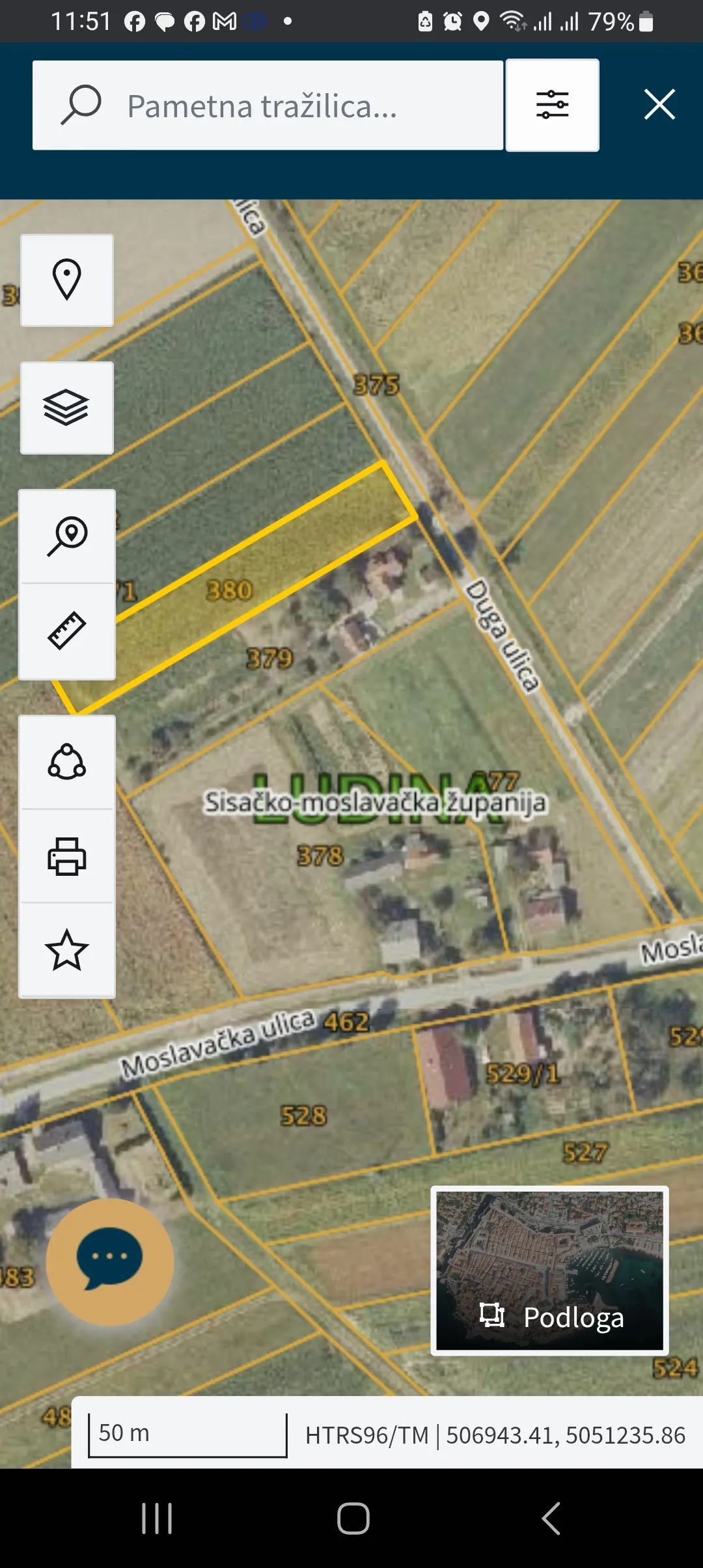 Zemljište se nalazi u Dugoj ulici 1954m2 uz asfaltiranu cestu je širina 17m.Do centra ,škole,vrtića, ambulante I svih potrebnih sadržaja je oko 300,400m.Struja,voda na 50m.