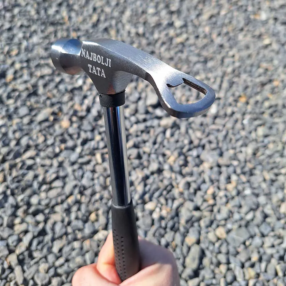 Tražite originalan poklon za nekoga tko voli „uradi sam“ projekte i uživa u osvježavajućem piću nakon posla? Ovaj praktični čekić s graviranjem, koji ujedno služi i kao otvarač za boce, idealan je spoj funkcionalnosti i zabave!