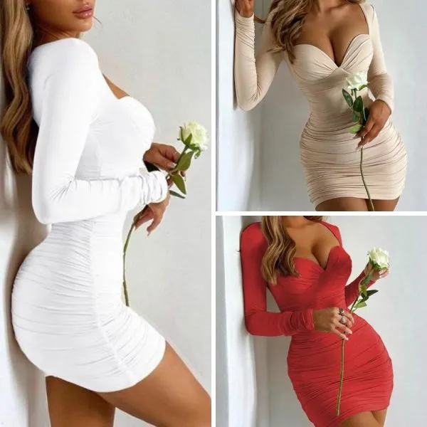 Elegantna seksi koktel haljina s V izrezom s dugim rukavima.