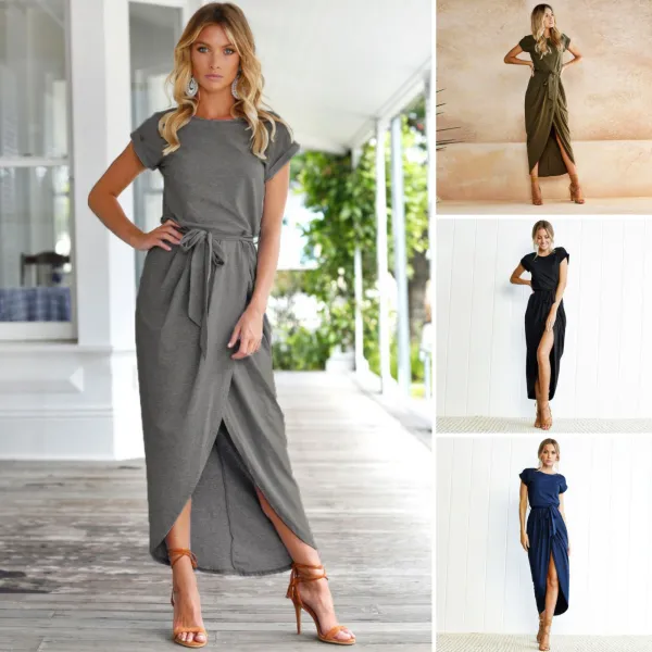Nosite ovu ležernu boho maxi haljinu kratkih rukava bilo kada i bilo gdje! Osjećajte se vitko i seksi, bez obzira jeste li oblina ili ne, s pojasom koji vam se obavija oko struka i razdjeljkom po sredini.