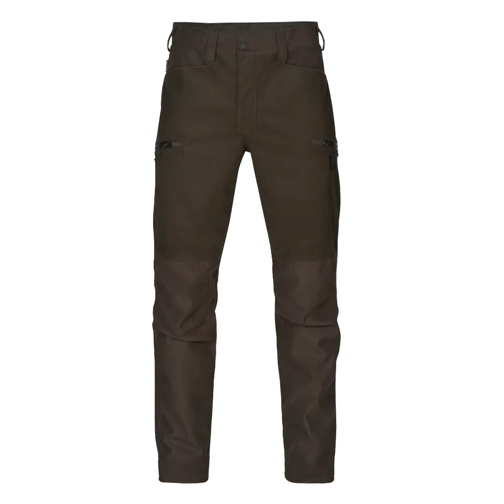 Hlače Harkila Aspire HWS projektirane su kako bi lovcima pružile savršenu kombinaciju izdržljivosti, tišine i zaštite od vremenskih uvjeta. Ove hlače imaju naprednu Harkila Weather System (HWS) membranu, koja nudi potpunu zaštitu od vjetra i vode s tlakom vodenog stupca od 20 000 mm, uz održavanje visoke prozračnosti. To osigurava da korisnik ostane suh i udoban u nepredvidivim vremenskim uvjetima. Hlače su izrađene od robusne, tihe triko tkanine tretirane izdržljivom vodoodbojnom (DWR) završnom obradom, koja učinkovito odolijeva prljavštini i vodi, a istovremeno omogućuje nesmetano kretanje na terenu. Unutrašnjost se može pohvaliti mrežastom podstavom koja odvodi vlagu, ključnom za održavanje udobnosti tijekom lova visoke aktivnosti. Praktične značajke obiluju, uključujući džepove s gornjim ulazom za jednostavan pristup, džepove na bedrima s vodootpornim patentnim zatvaračima za sigurno spremanje i namjenski držač patrona u džepu na desnom bedru. Dizajn također uključuje podesive remene za gležnjeve i podešavanje koljena, osiguravajući sigurno prianjanje oko čizama i poboljšanu slobodu kretanja, čak i na strmom ili zahtjevnom terenu. Ove hlače predstavljaju vrhunac lovačke odjeće, dizajnirane da zadovolje raznolike potrebe ozbiljnih ljubitelja prirode.