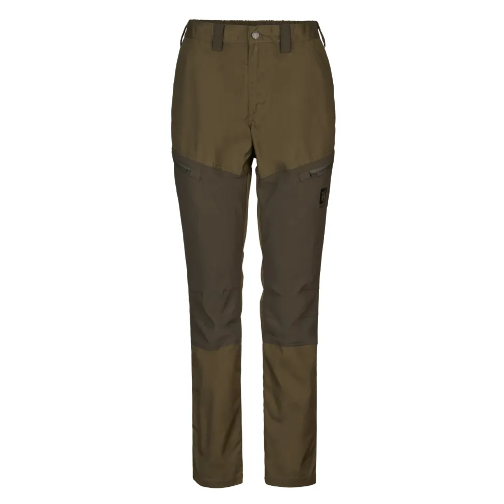 Harkila Fjell ženske hlače dizajnirane posebno za aktivne lovce, ženske hlače Fjell spajaju robusnu izdržljivost s prilagođenim krojem. Izrađene od robusne, voskirane pamučne tkanine nalik platnu, poboljšane rastezljivim umetcima, ove hlače pružaju iznimnu pokretljivost i udobnost prilagođenu ženskoj figuri. S sigurnim kopčanjem na gumbe, elastičnom stražnjom stranom na struku za savršeno pristajanje i obiljem džepova, uključujući džepove na bedrima s patentnim zatvaračem za osnovne potrepštine, ove hlače idealne su za razne aktivnosti u različitim vremenskim uvjetima.