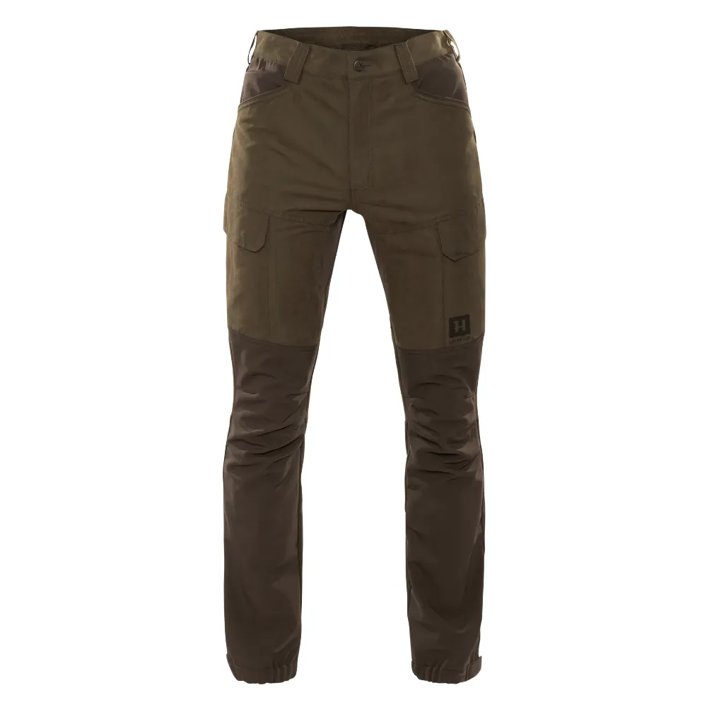 Harkila Scandinavian hlače izrađene su od vrlo tihe, mekane, izdržljive i brzosušeće mješavine pamuka i poliestera. Također imaju aktivni kroj, s elastičnim pojasom i rastezljivim panelima na stražnjici, koljenima i bedrima. Iznimno su udobne za hodanje i prikradanje. Imaju i niz značajki koje ćete brzo smatrati neprocjenjivima: dugi mrežasti patentni zatvarači za ventilaciju na stražnjoj strani bedara omogućuju cirkulaciju zraka po vrućem vremenu, a istovremeno sprječavaju ulazak insekata i komadića vegetacije. Na prednjoj strani bedara nalaze se veliki džepovi s patentnim zatvaračem i zaštitnim preklopima s tihim magnetskim zatvaračima. Desni džep sadrži držač za četiri dodatna metka za pušku, a unutar lijevog džepa nalazi se mali džep za sigurno držanje mobitela dok ste u pokretu.