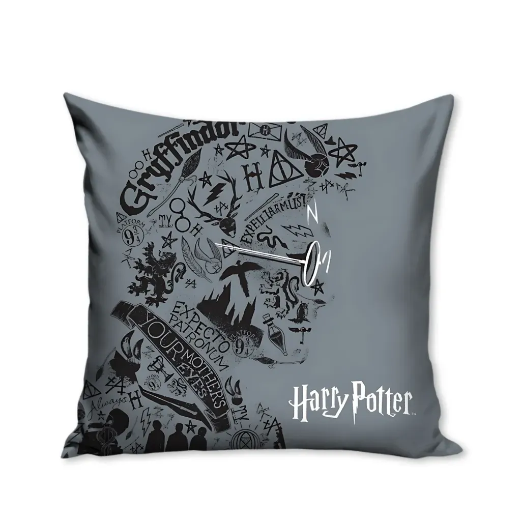 Harry Potter „Gray” jastuk veličine 40 cm donosi lik Harryja iz filmske franšize Harry Potter u umjetničkom izdanju punom citata i sličica iz filmova. Inspiriran čarobnjačkim školovanjem u Hogwartsu i avanturama u čarobnjačkom svijetu, ovaj jastuk kombinira tematiku magije i moderan dizajn.